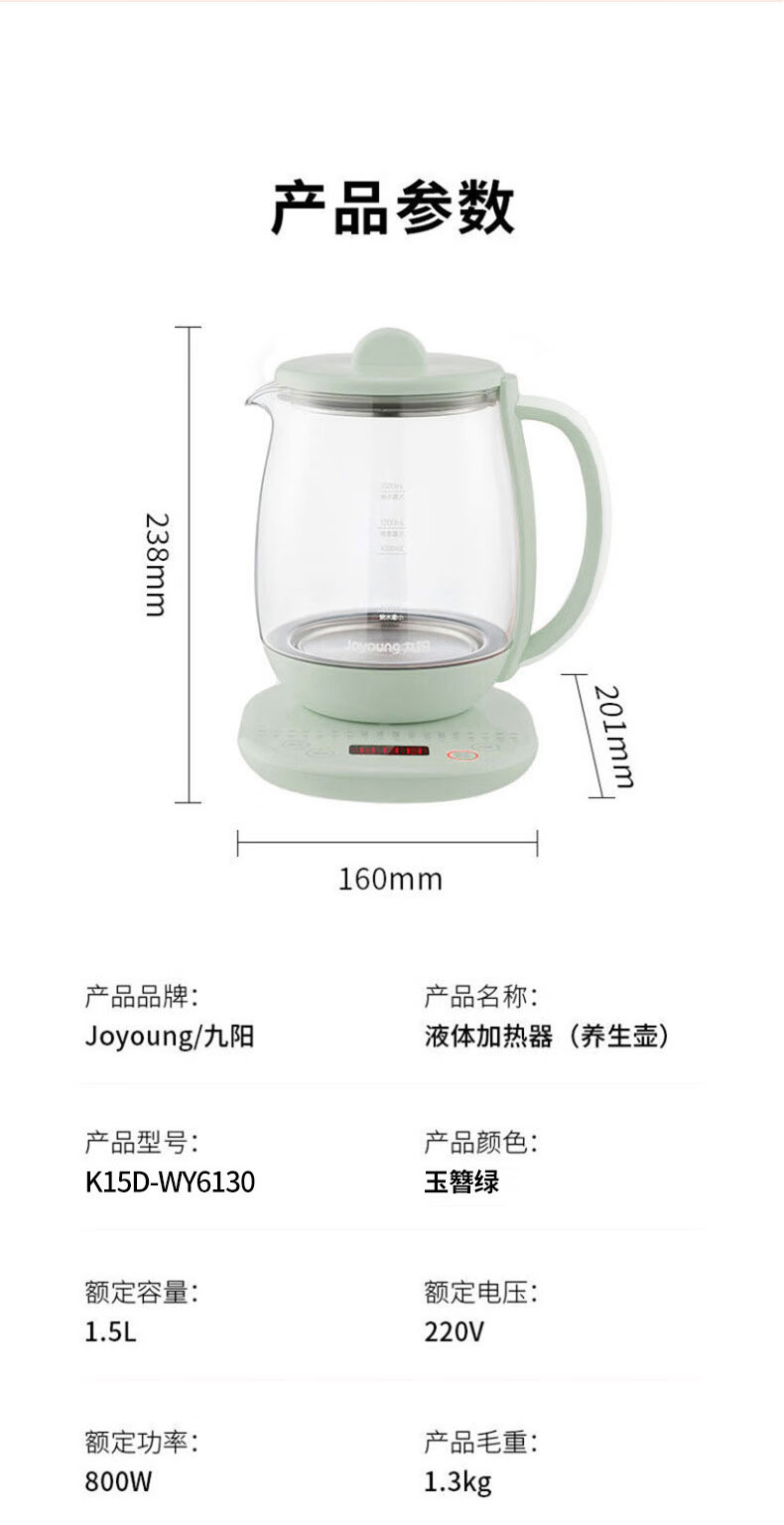 商品名称:【京东/顺丰/德邦配送】Joyoung/九阳1.5升养生壶K15D-WY6130