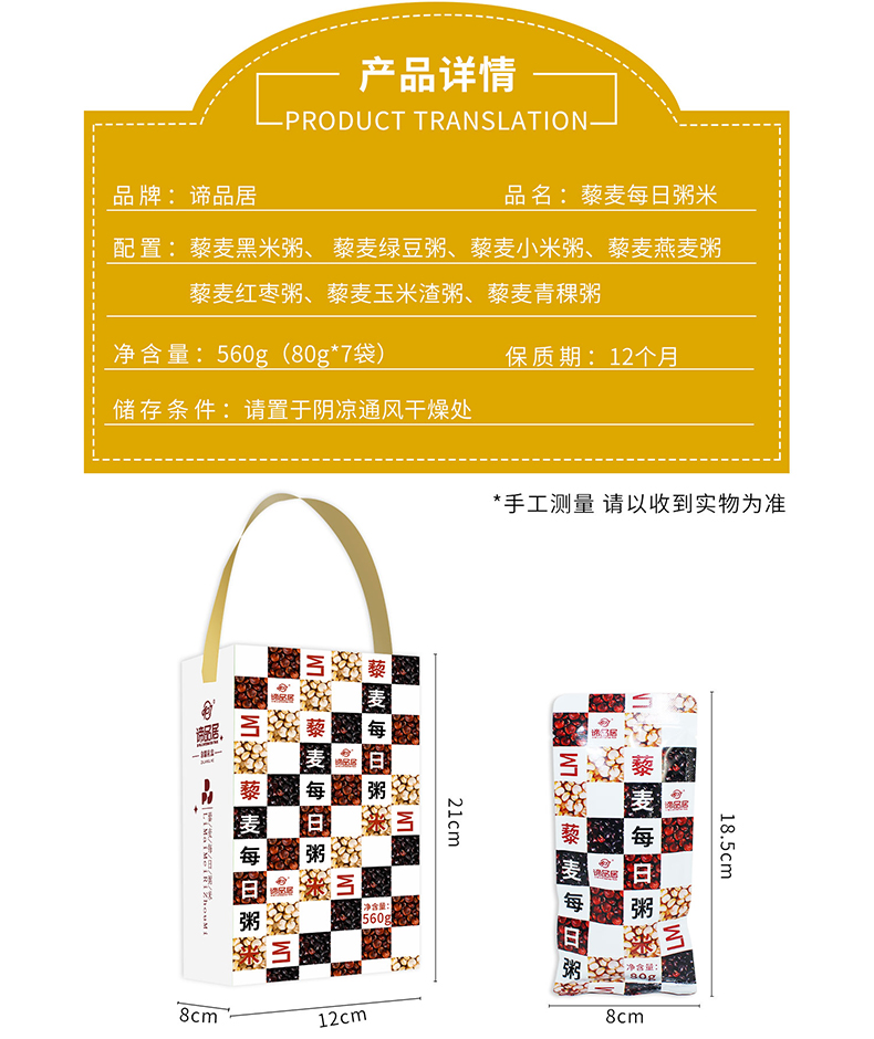商品名称:谛品居藜麦每日粥米伴手礼袋560g