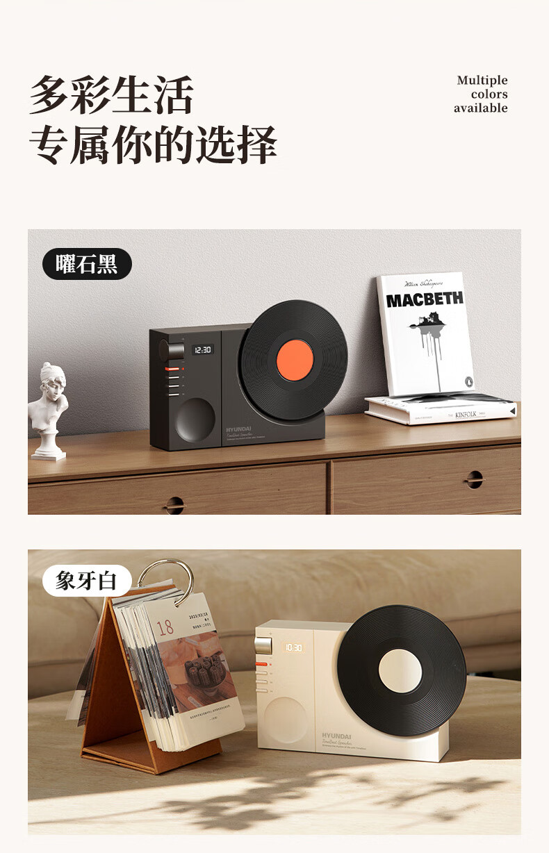 【京东/顺丰/德邦配送】HYUNDAI/现代时光黑胶唱片时钟蓝牙音箱YH-F170