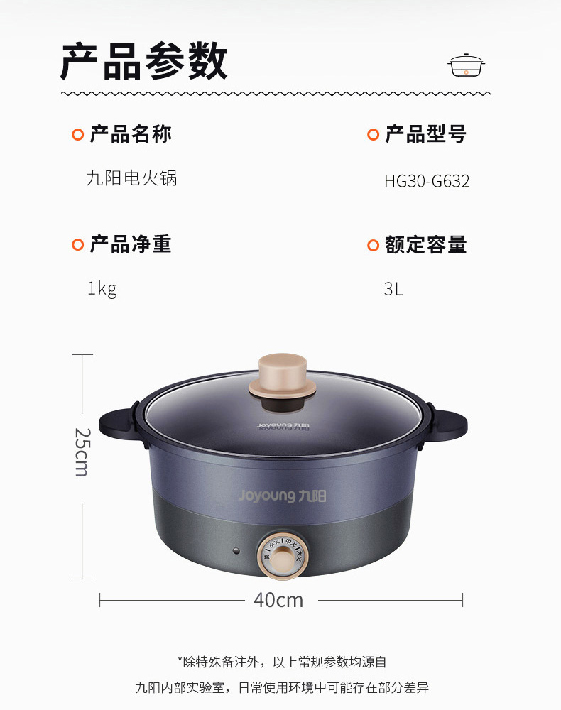 商品名称:Joyoung/九阳3升电火锅HG30-G632