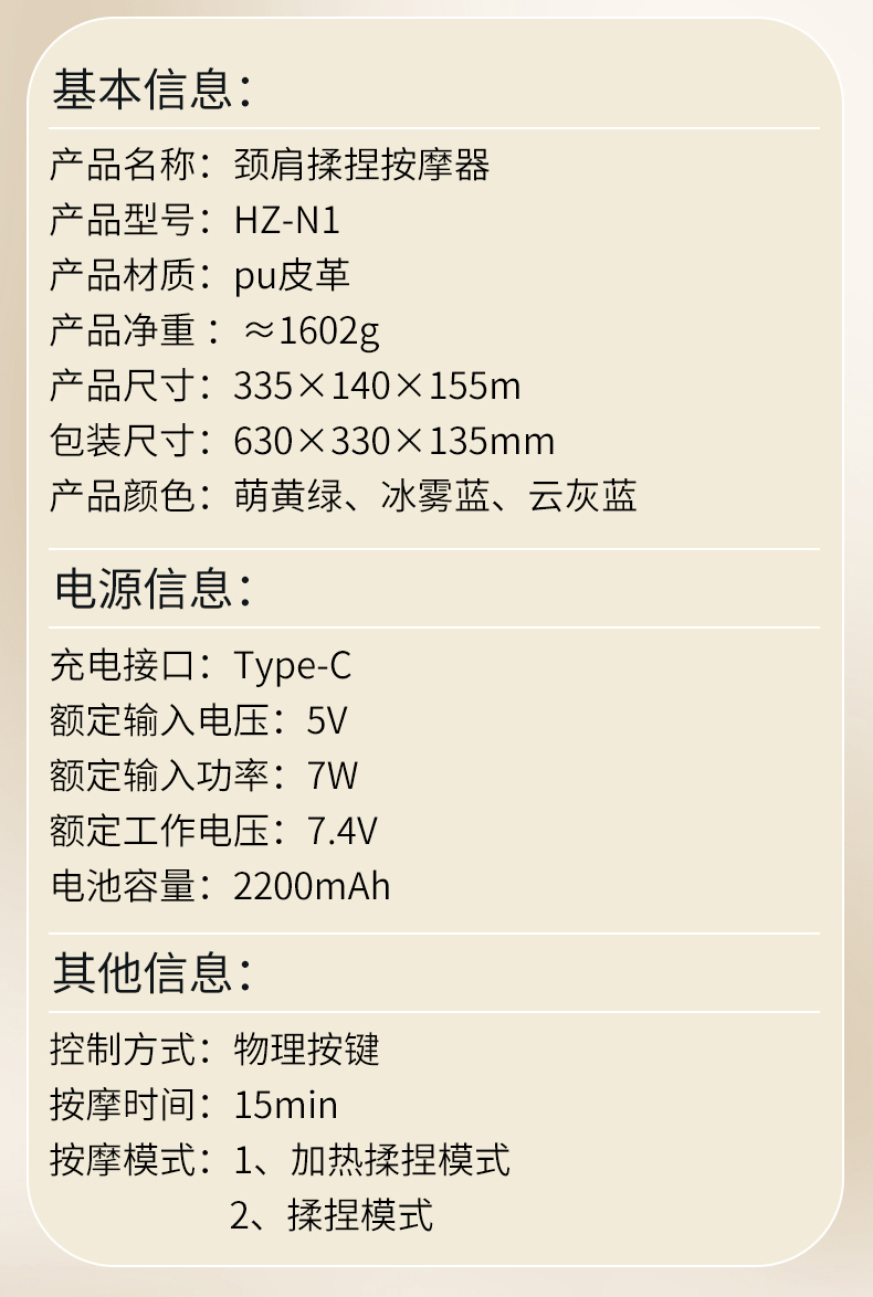 商品名称:HEZHENG/和正颈肩揉捏按摩器HZ-N1