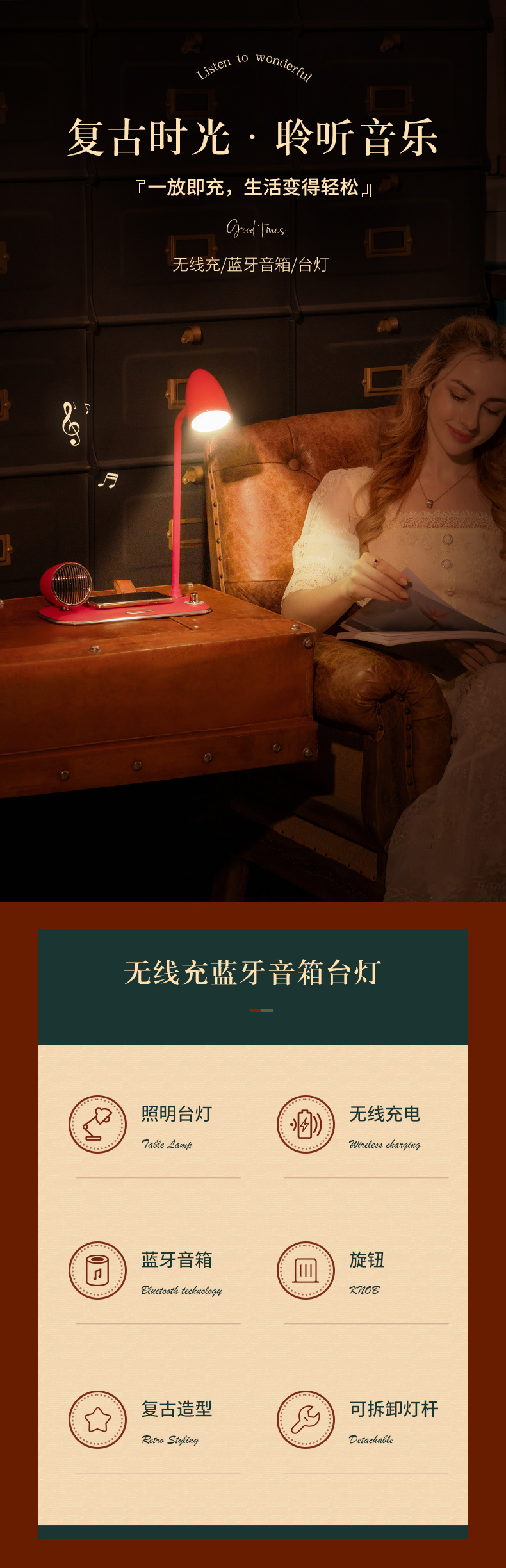 商品名称:HYUNDAI/现代多功能复古台灯音箱YH-F168