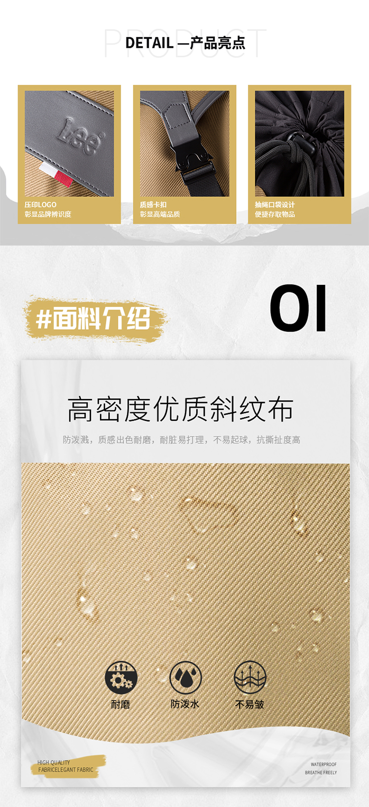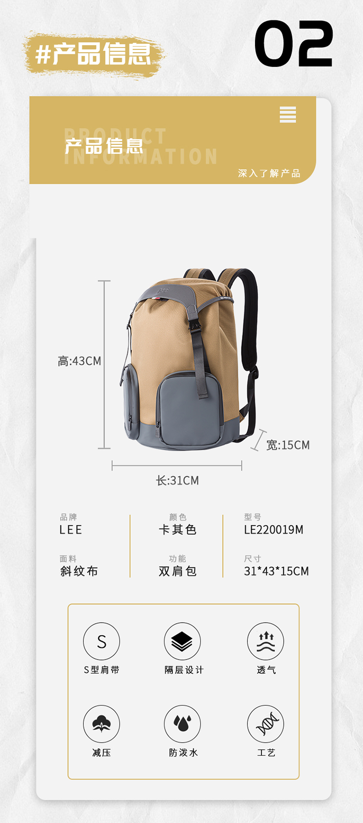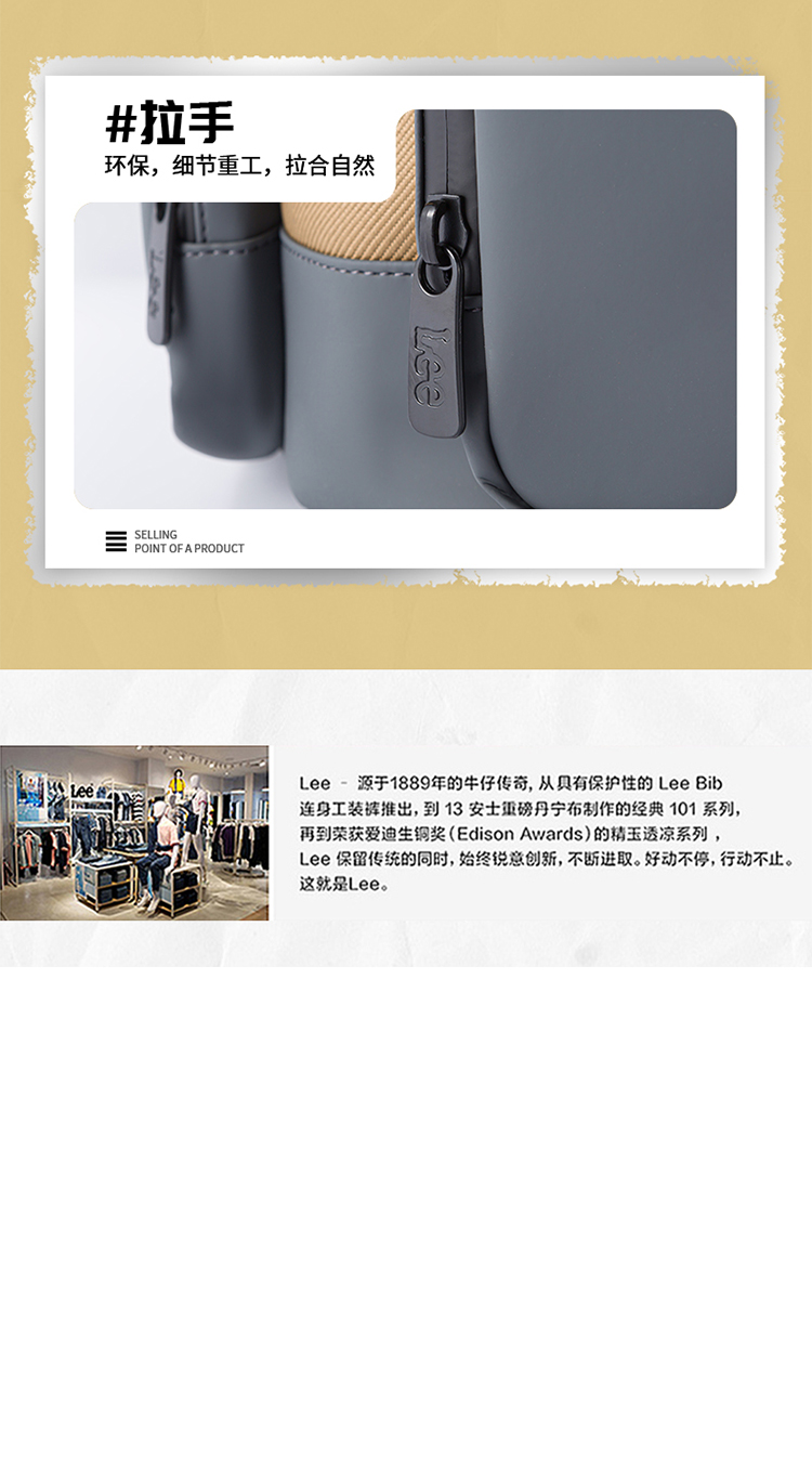 商品名称:Lee潮流翻盖双肩包-卡其色LE220019M
