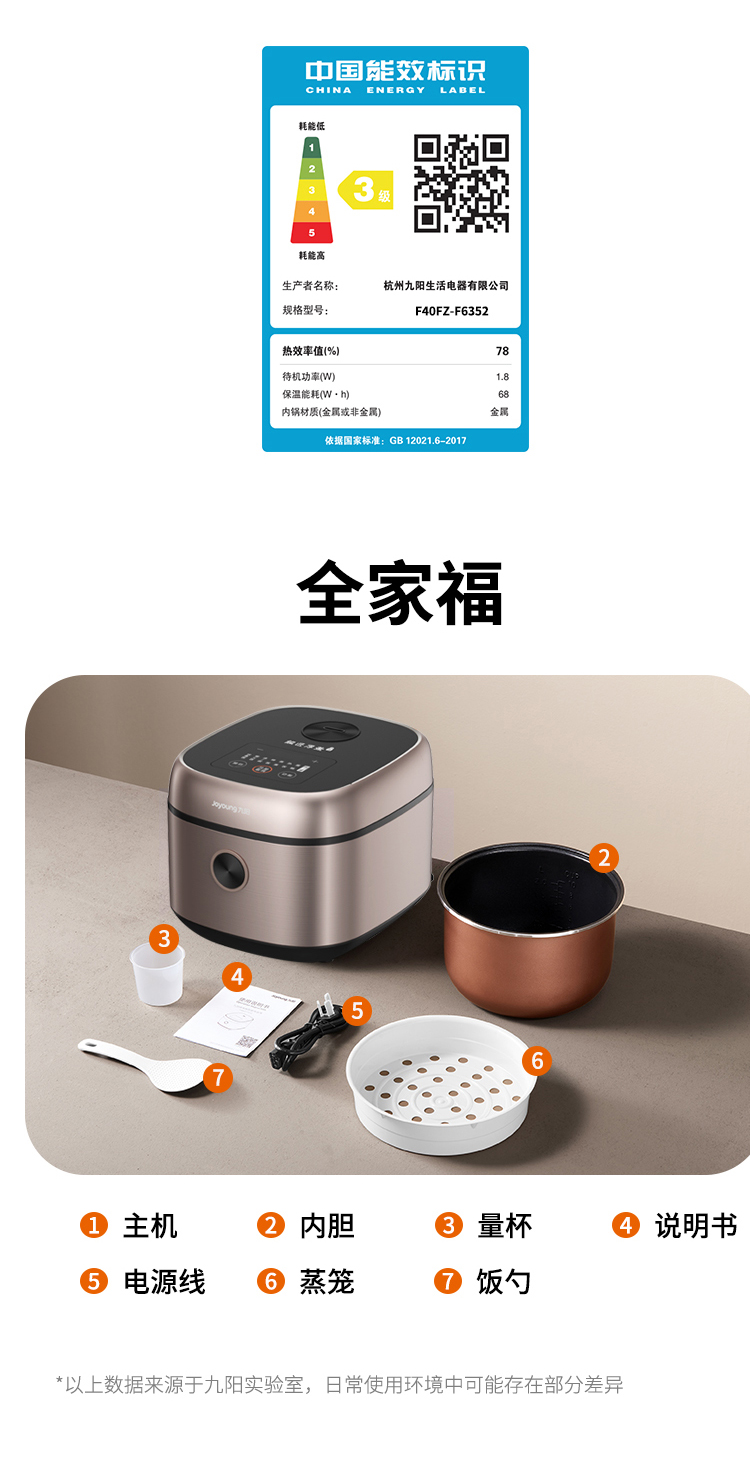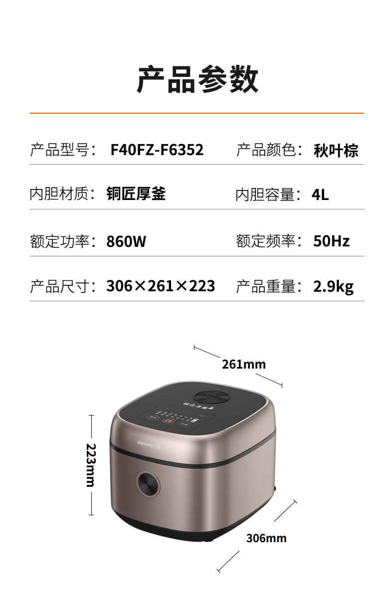 商品名称:【京东/顺丰/德邦配送】Joyoung/九阳4升电饭煲F40FZ-F6352