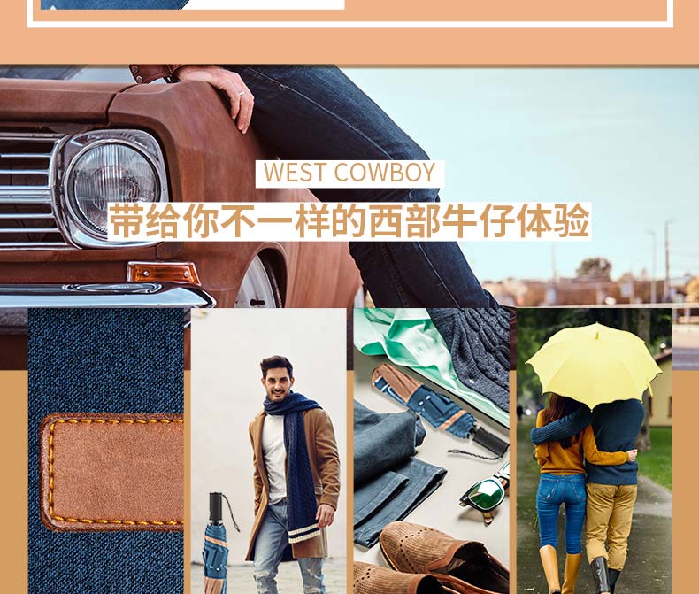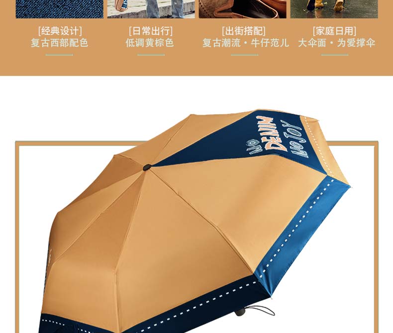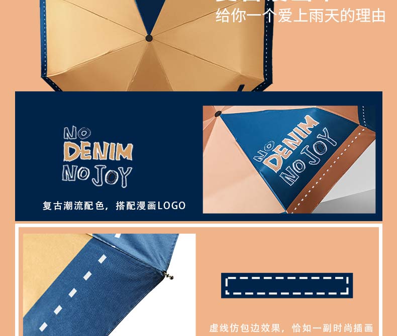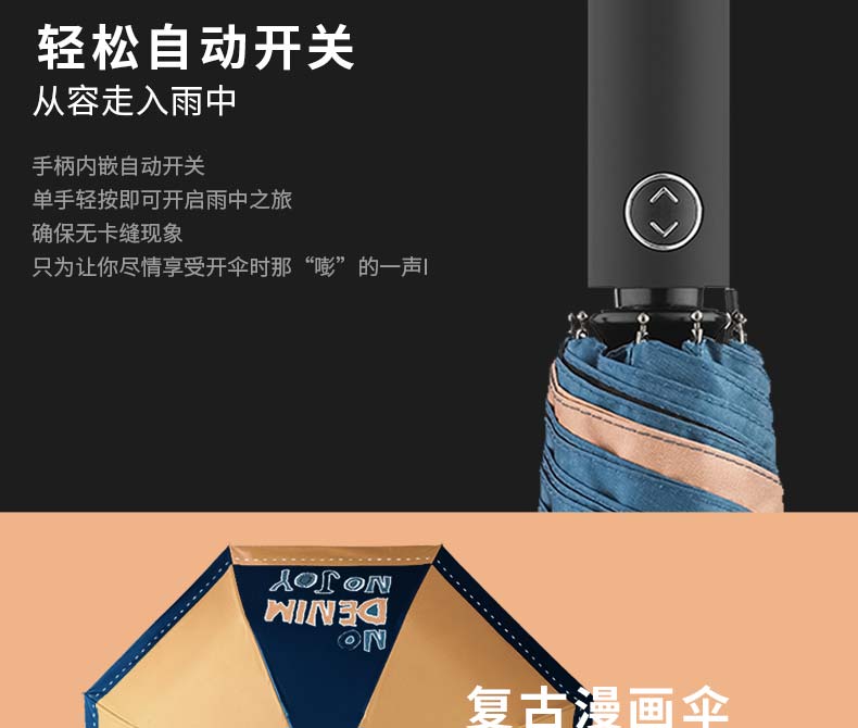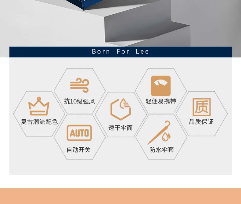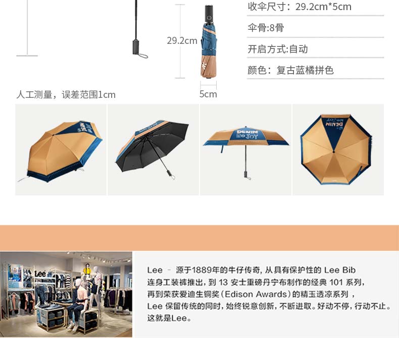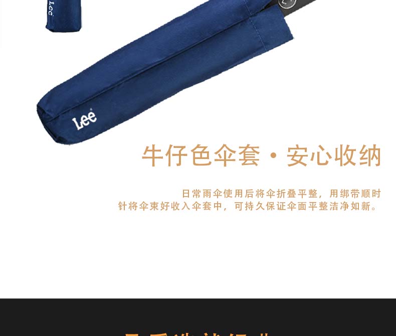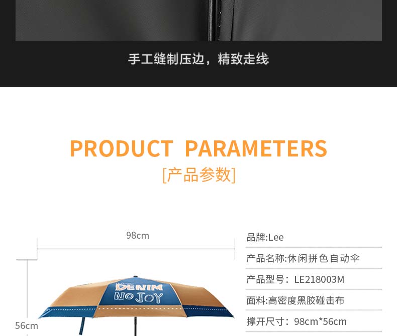 商品名称:Lee休闲拼色自动雨伞-复古蓝橘拼色LE218003M