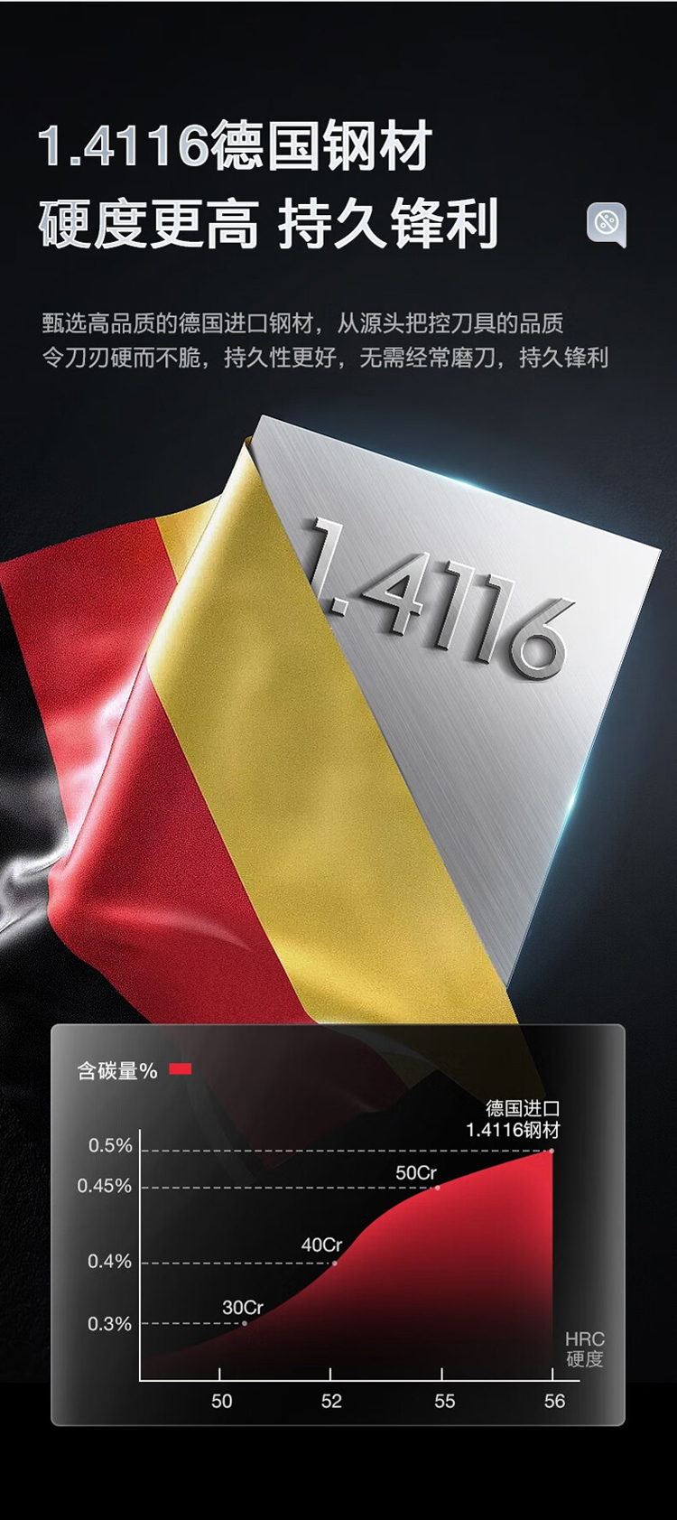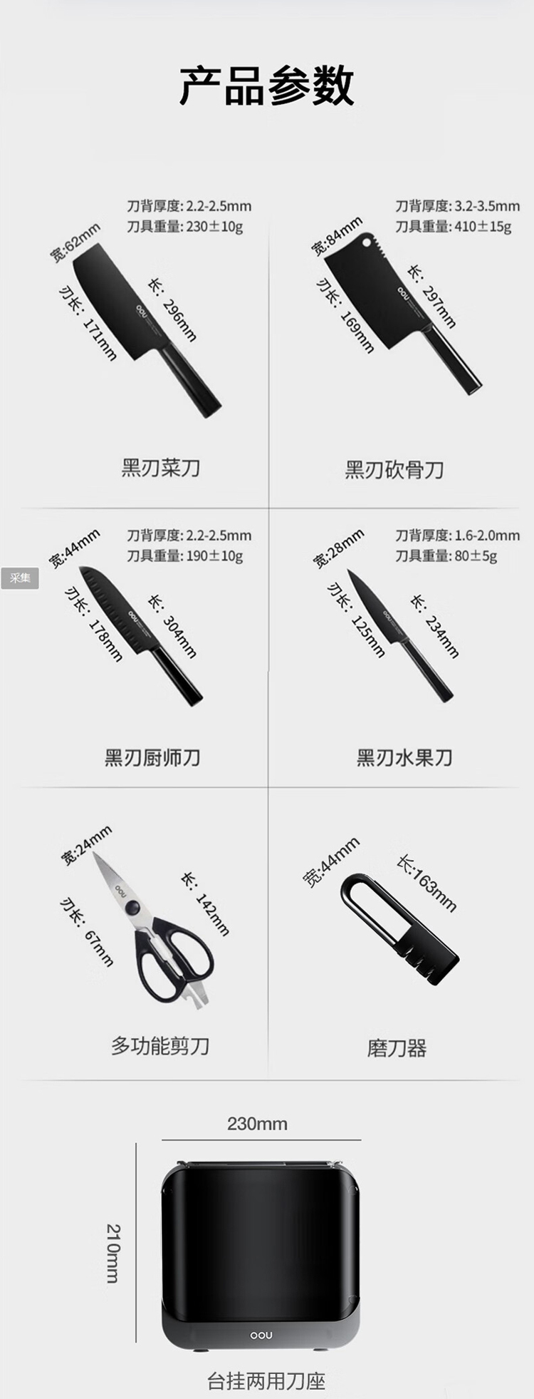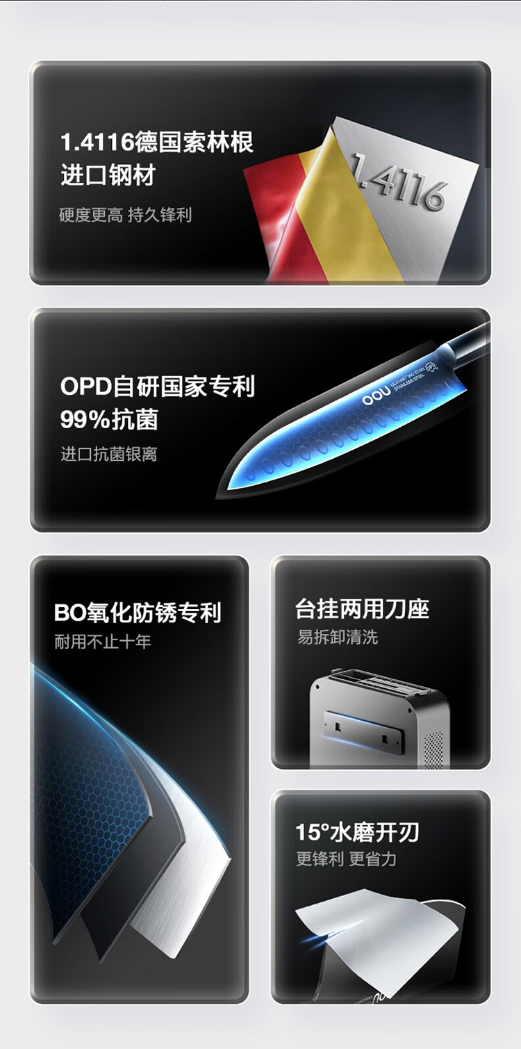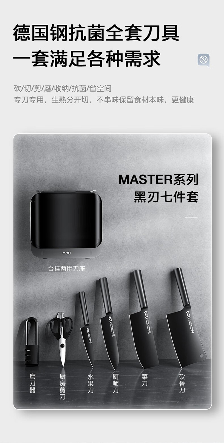 商品名称:OOU!黑刃Master系列1.4116抗菌刀具七件套DJ0041