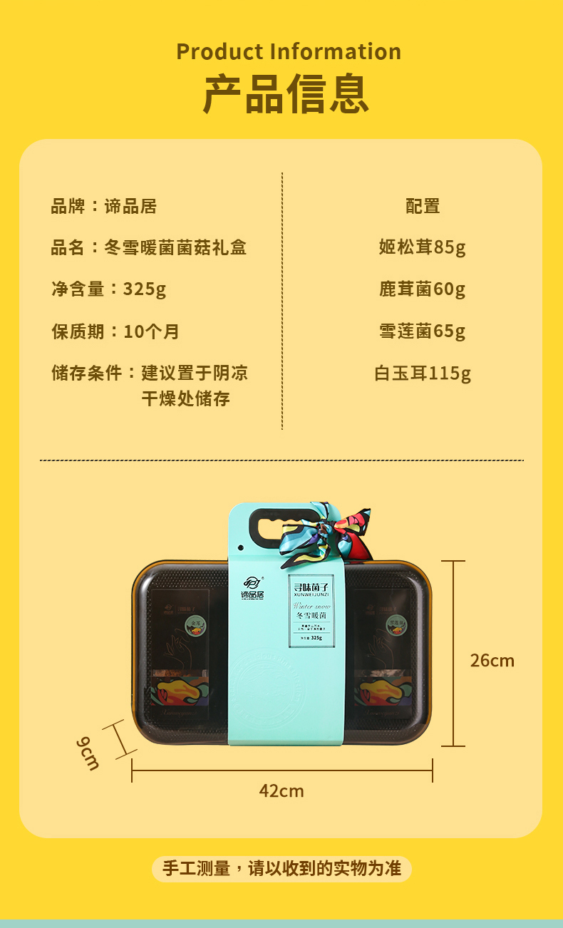 商品名称:谛品居冬雪暖菌菌菇礼盒325g