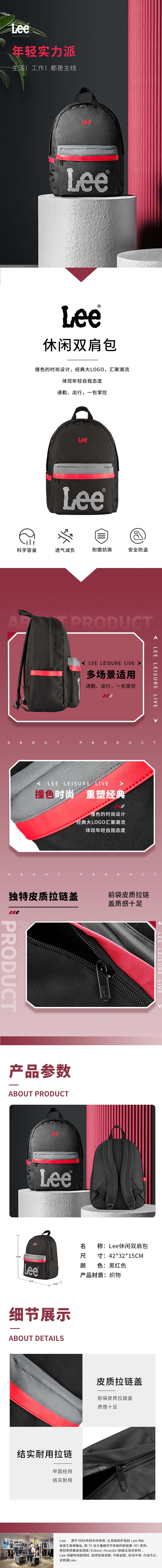 商品名称:Lee休闲双肩包-黑红色LE210180M
