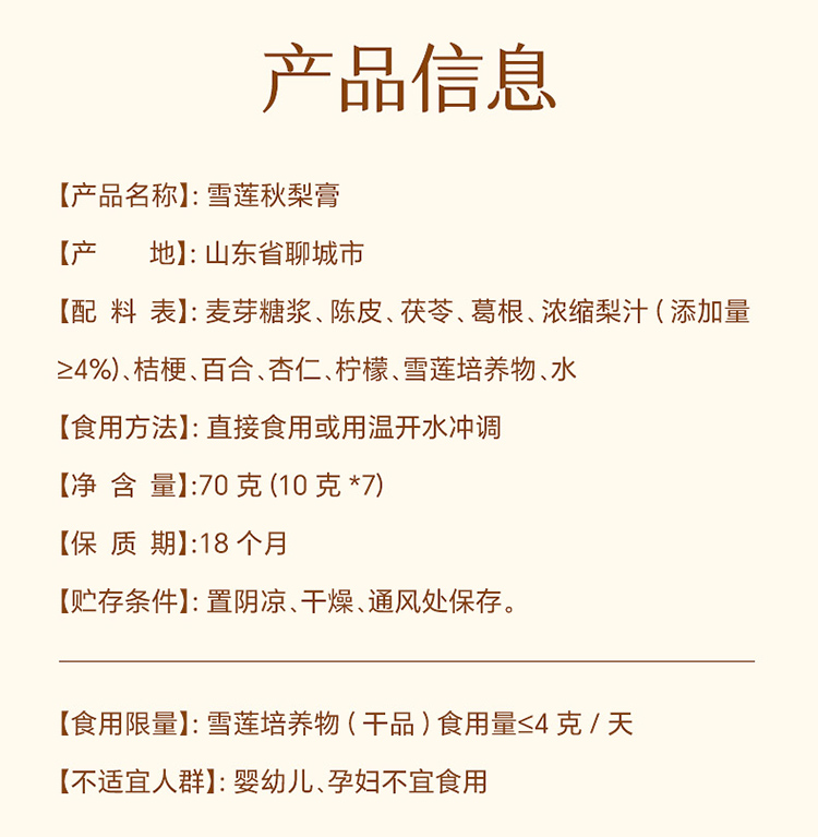 商品名称:张太和雪莲秋梨膏70g*8盒