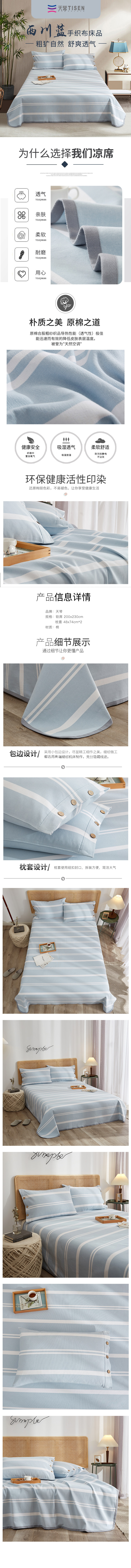商品名称:TISEN/天琴西川蓝手织布床品三件套200*230cm