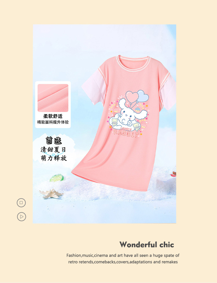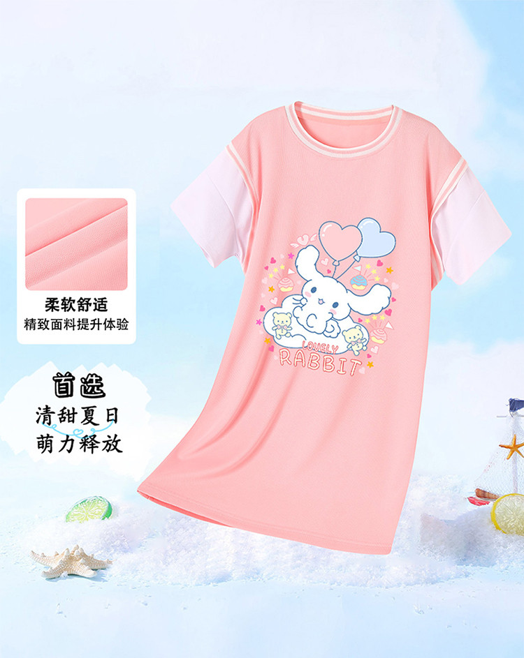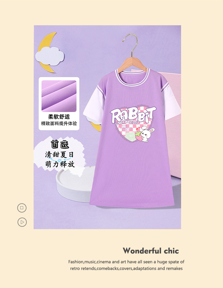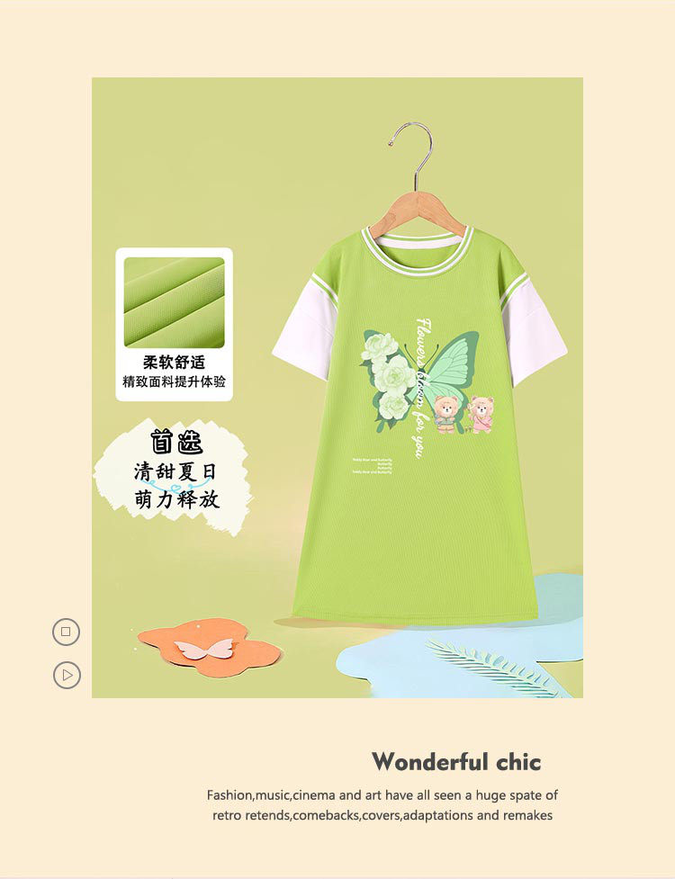 商品名称:2024春秋女童连衣裙舒适透气时尚甜美运动T恤裙中大童装 000207