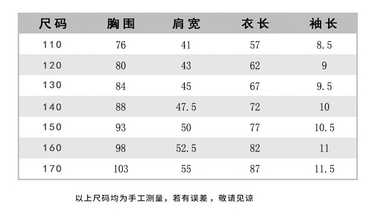 170 87 55 11.5 14-15岁 103 170/88A