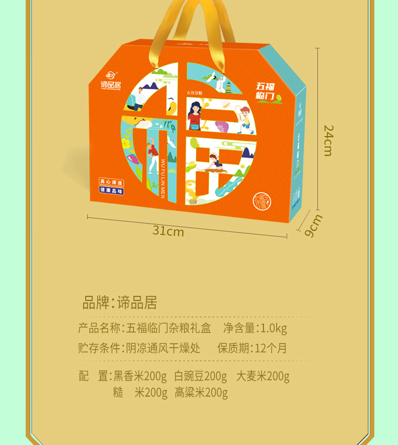 商品名称:谛品居五福临门杂粮礼盒1000g
