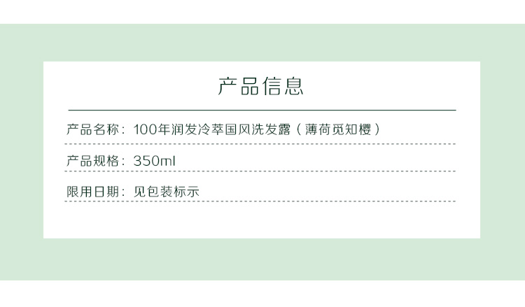 商品名称:100年润发薄荷觅知樱冷萃国风洗发露350ml