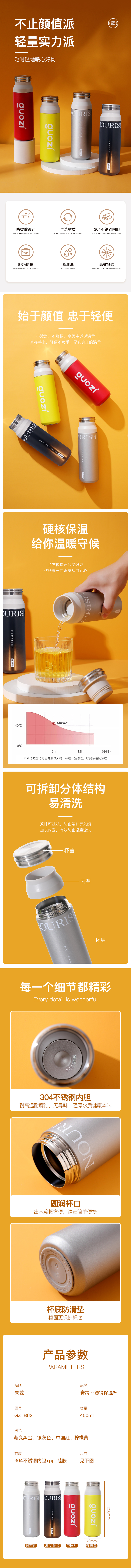 商品名称:GUOZI/果兹450毫升赛纳不锈钢保温杯GZ-B62