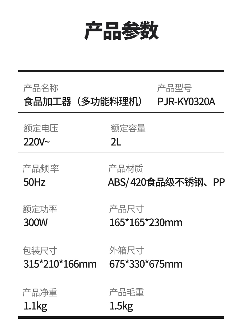 商品名称:Dupont/杜邦2升食品加工器多功能料理机PJR-KY0320A