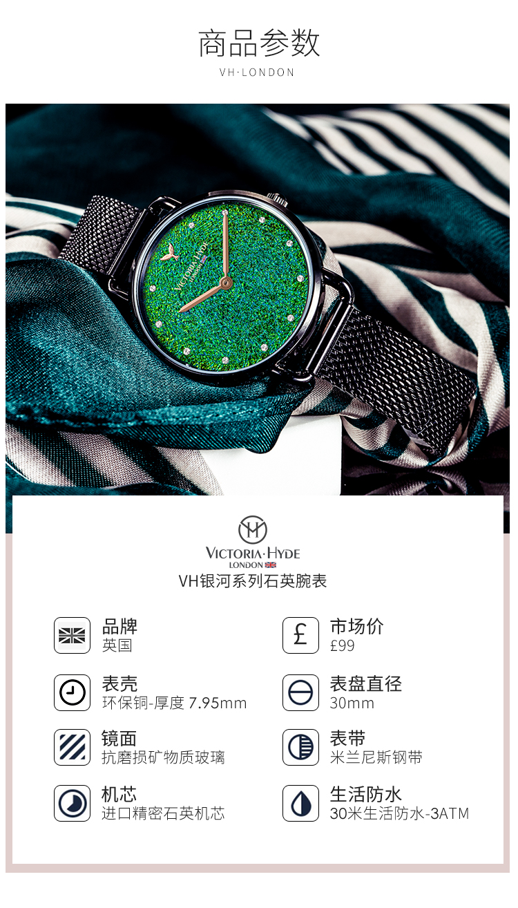 商品名称:Victoria.Hyde/维多利亚海德 女士手表 时尚轻奢防水石英腕表30mm
