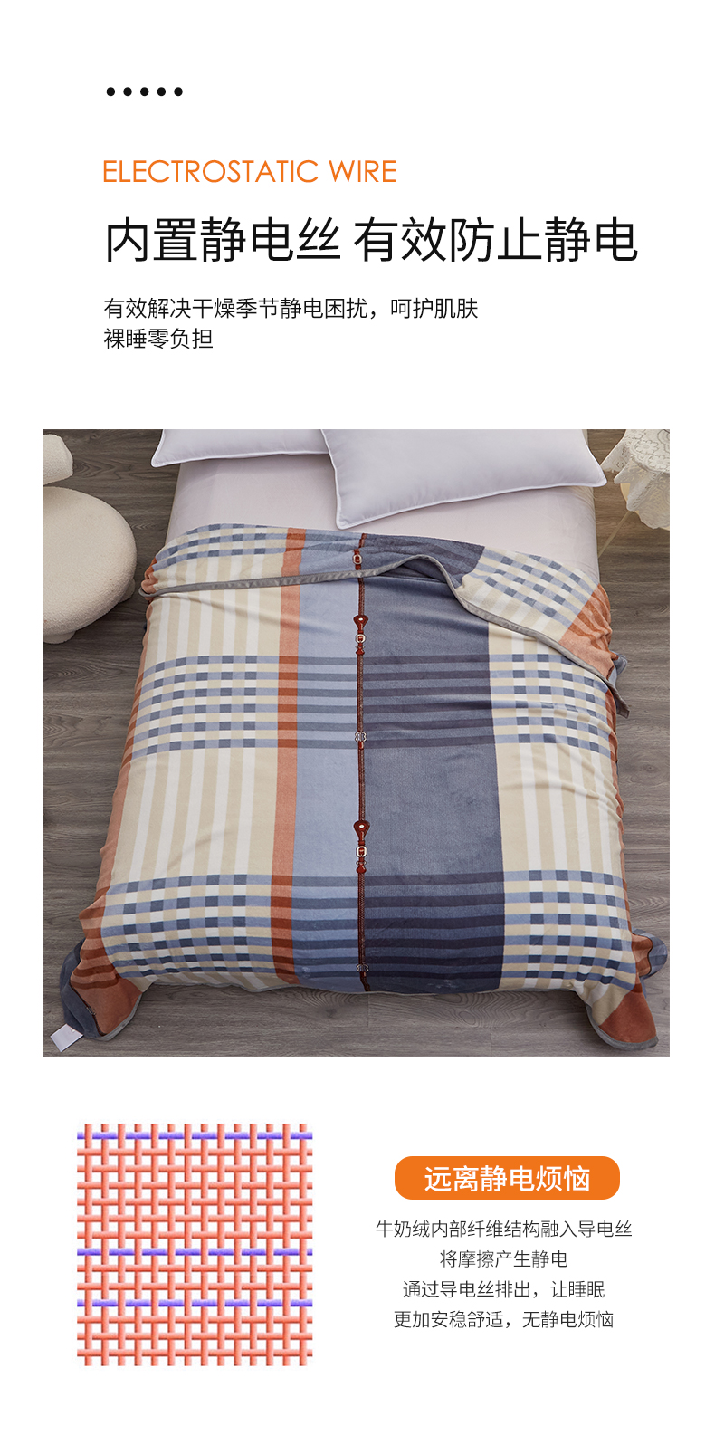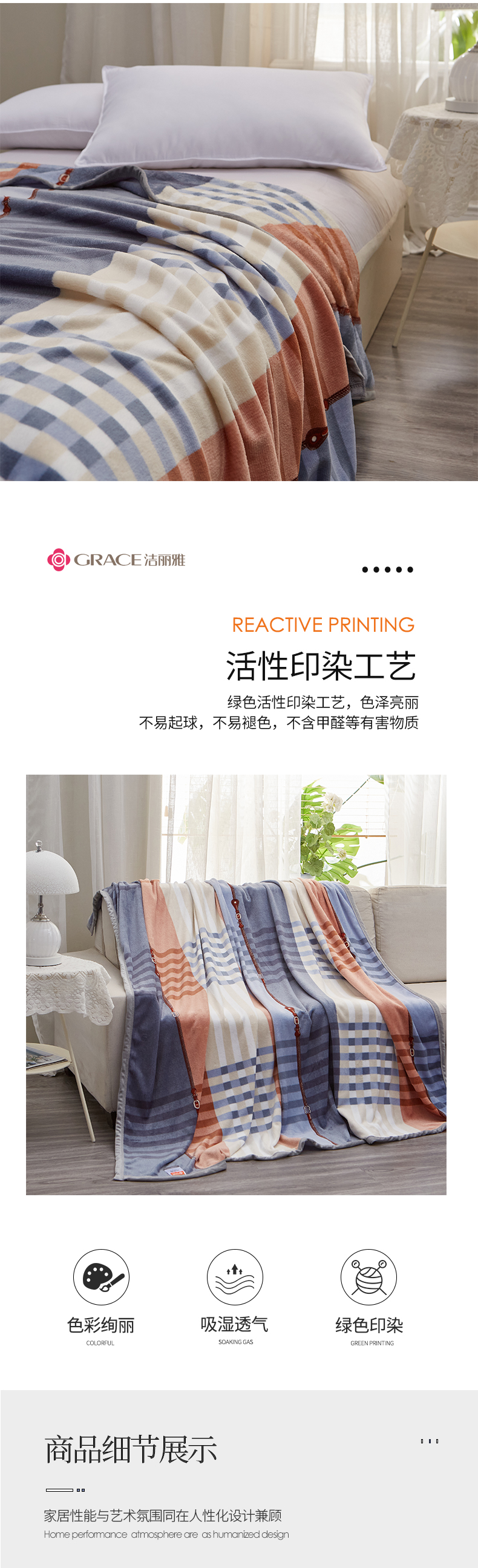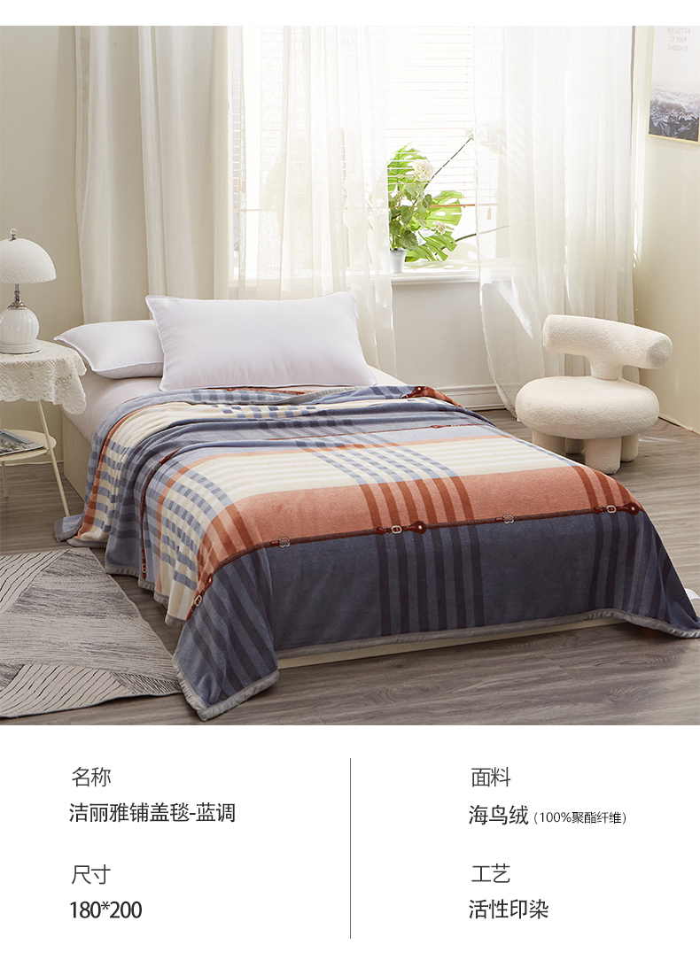 GRACE/洁丽雅蓝调抗静电铺盖毯180*200cm 900g