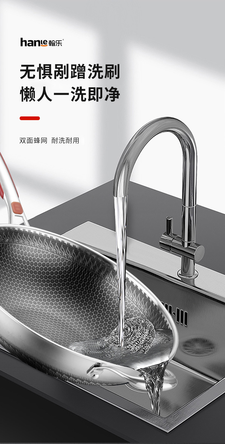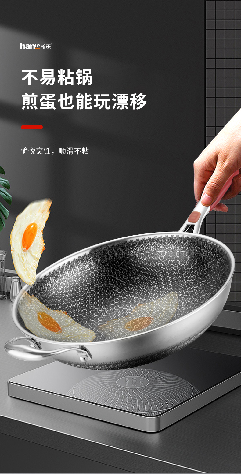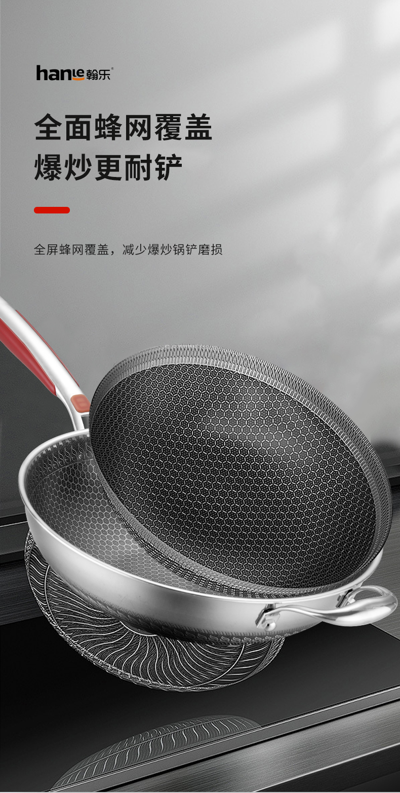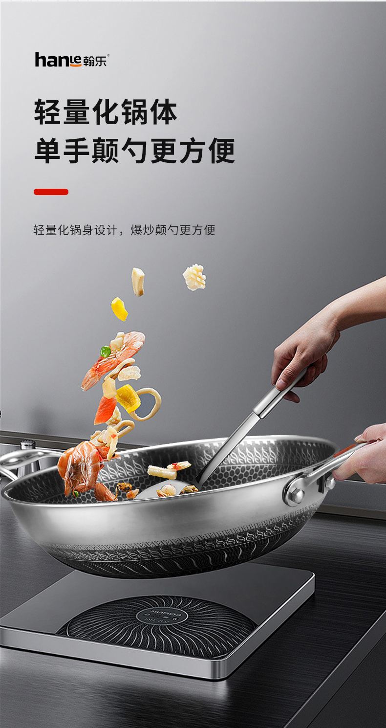 商品名称:hanle/翰乐蜂宫系列32cm不锈钢炒锅HL-C22