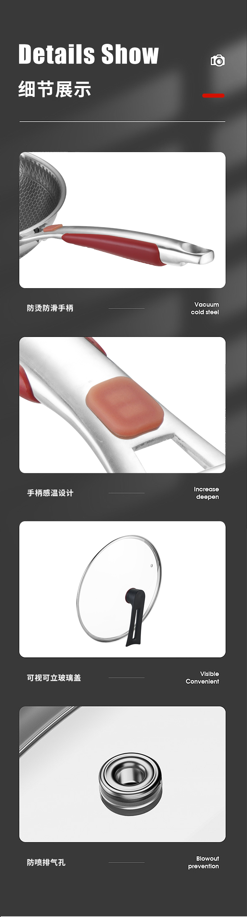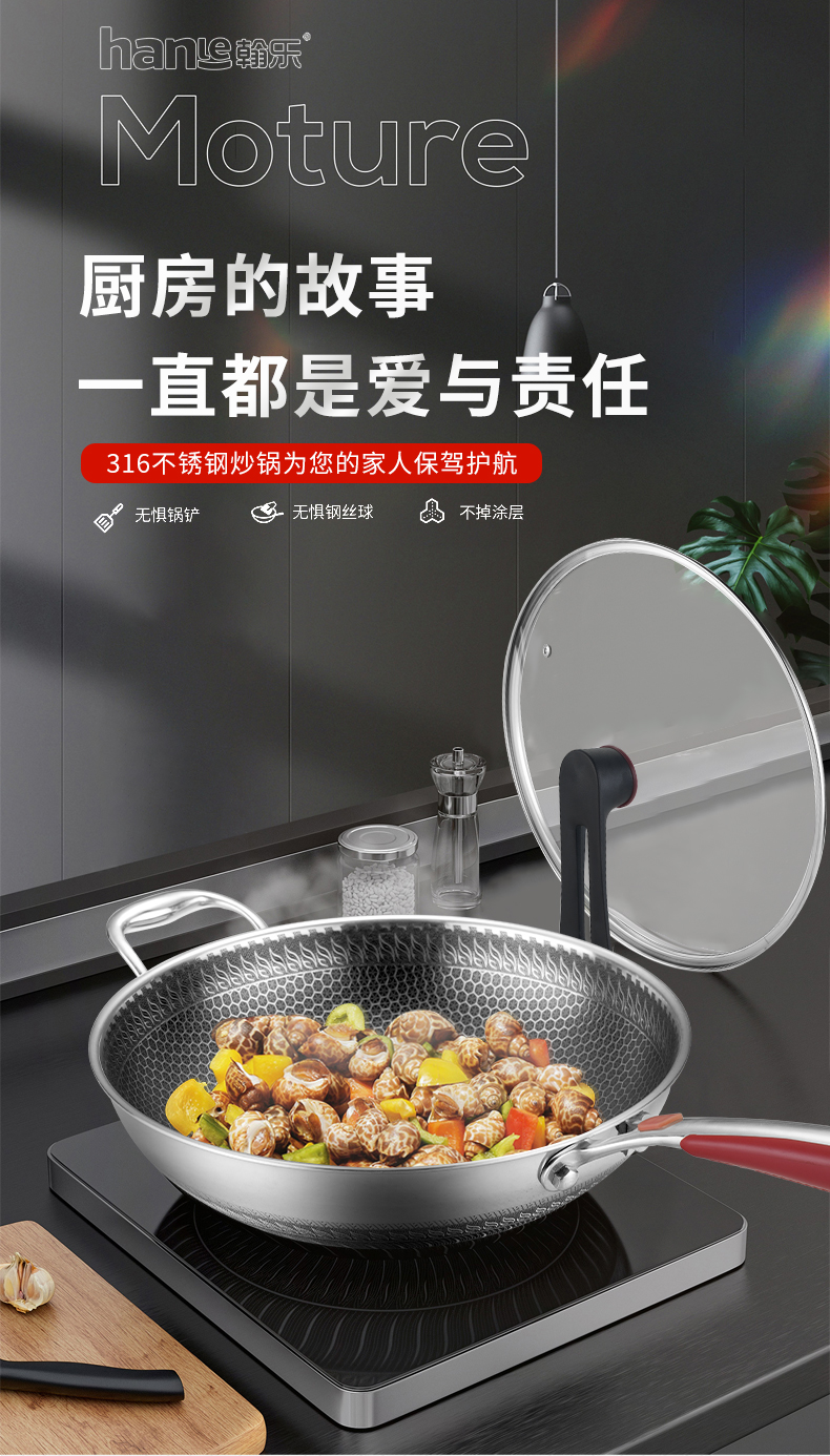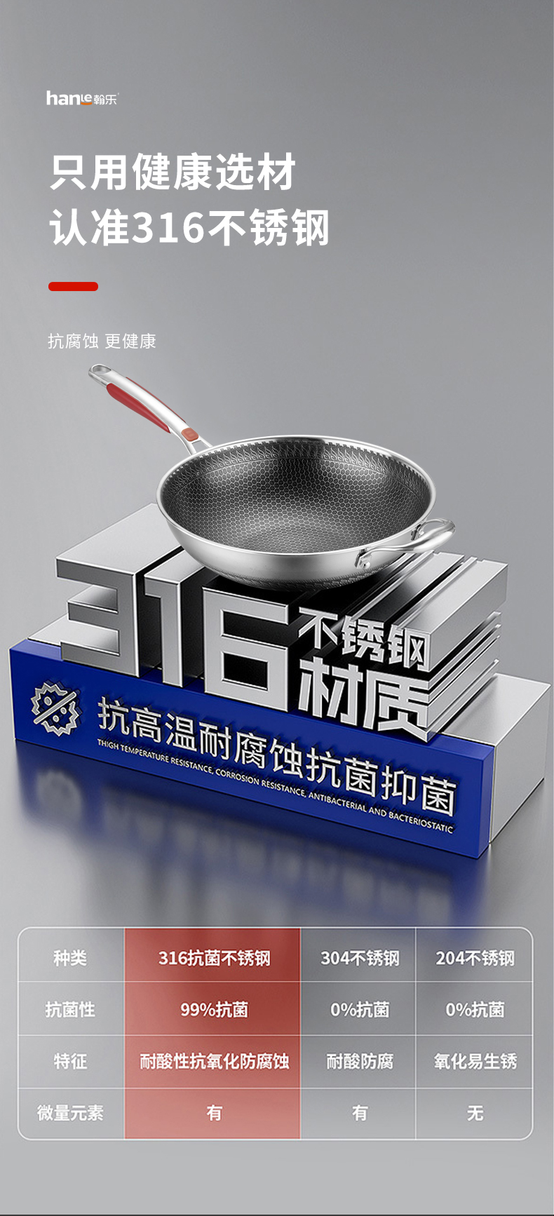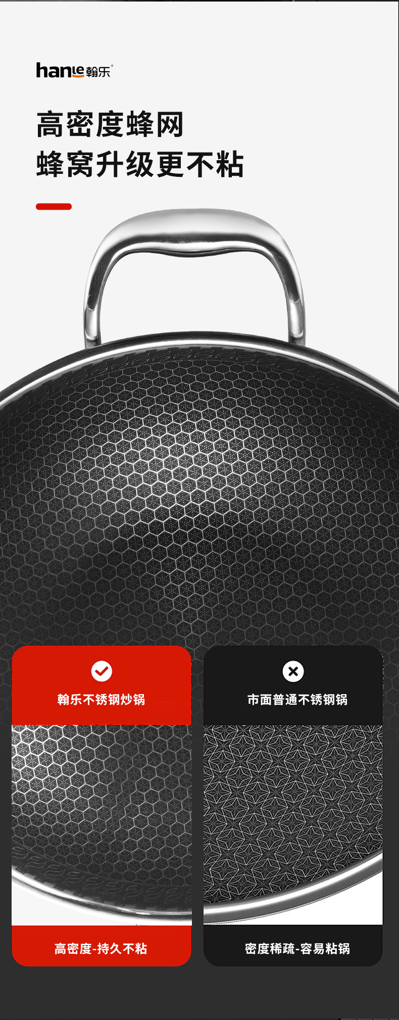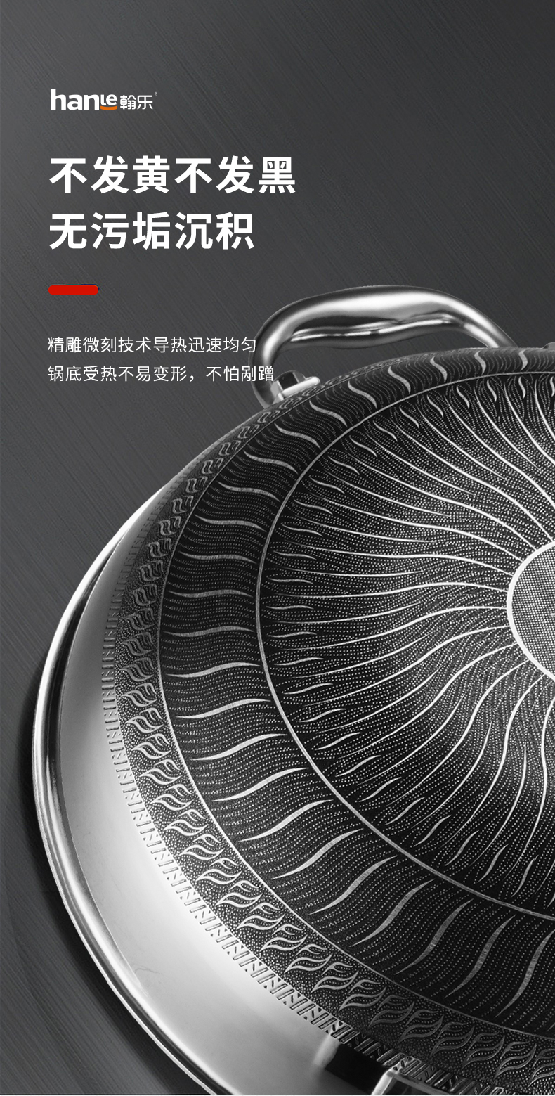 商品名称:hanle/翰乐蜂宫系列32cm不锈钢炒锅HL-C22