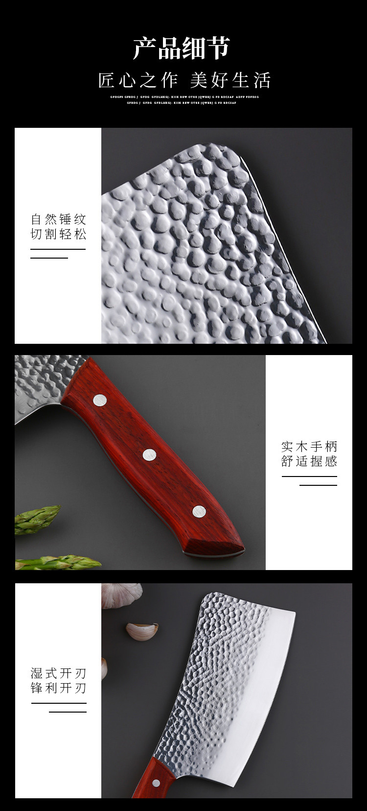 商品名称:hanle/翰乐不锈钢锤纹锻打砍骨刀