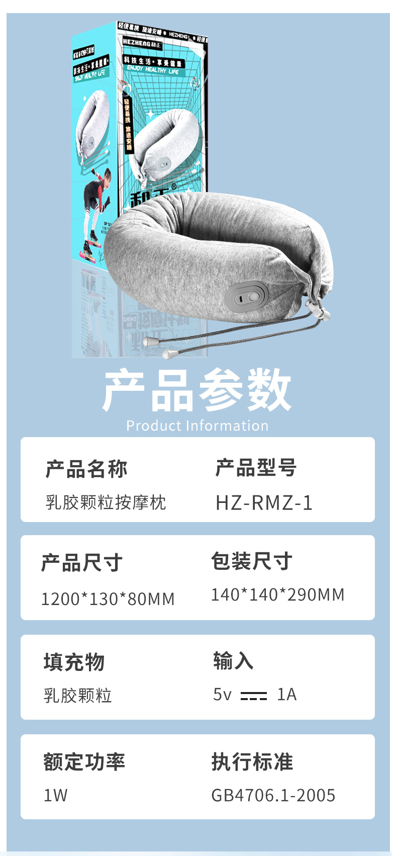 商品名称:HEZHENG/和正乳胶颗粒按摩枕HZ-RMZ-1