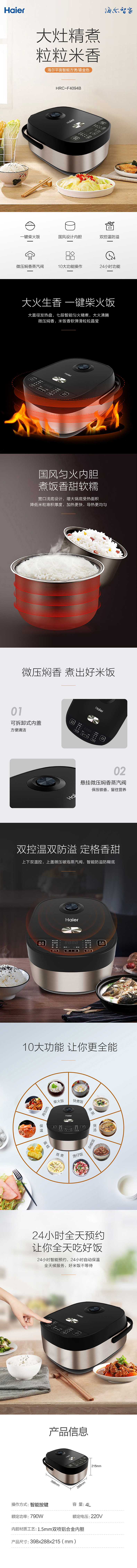 商品名称:Haier/海尔4升平面智能电饭煲-鎏金色HRC-F4094B