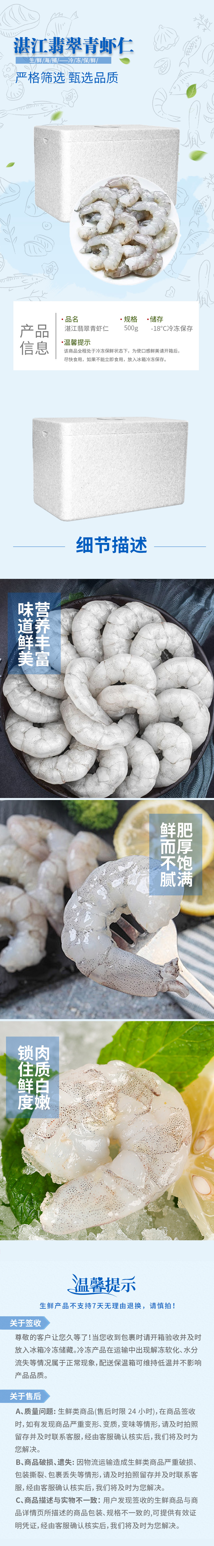商品名称:【顺丰配送】如宜一统翡翠青虾仁139型500g
