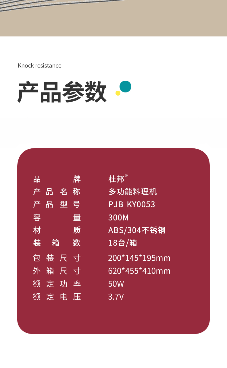 商品名称:Dupont/杜邦300毫升多功能料理机PJB-KY0053