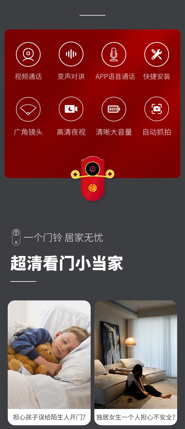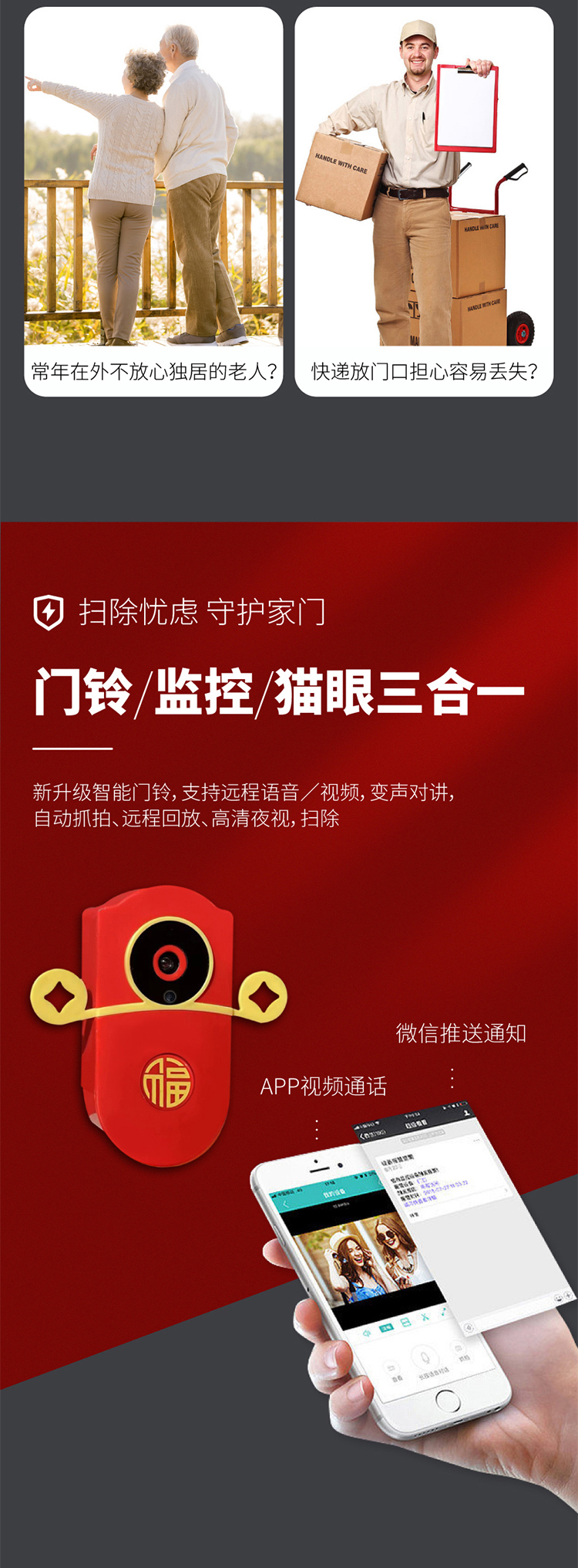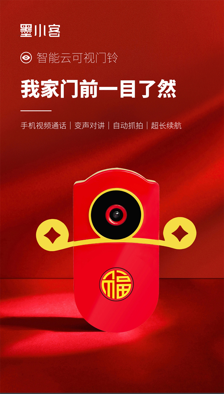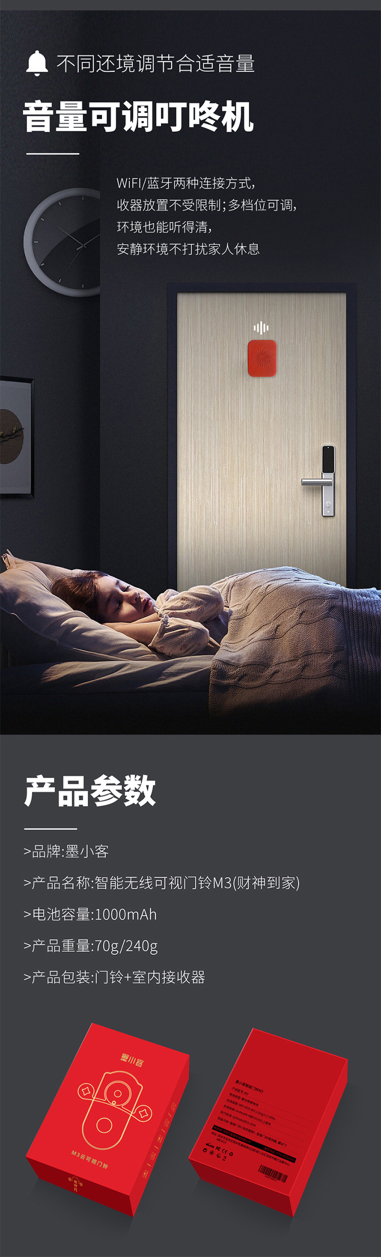 商品名称:墨小客财神到家智能无线可视门铃M3