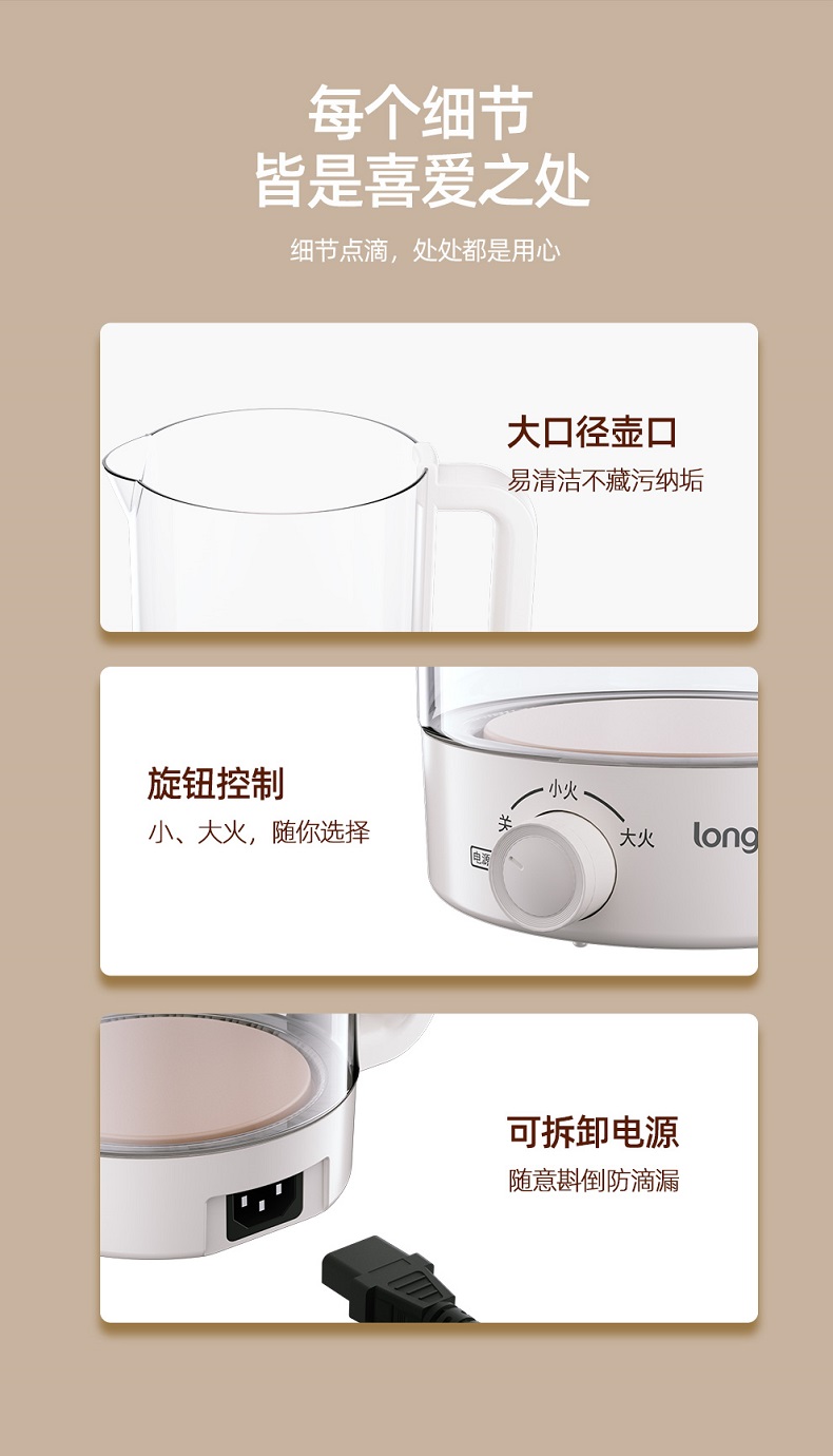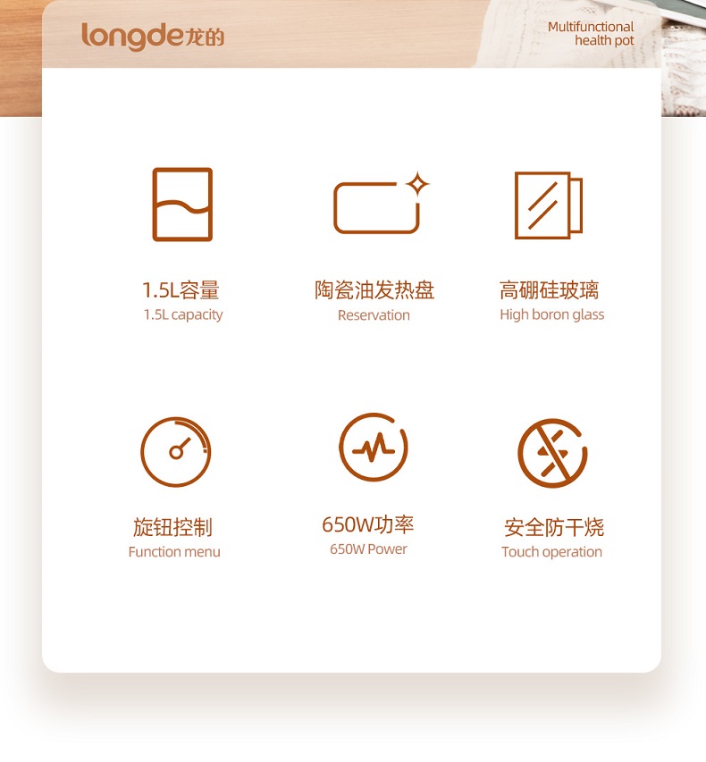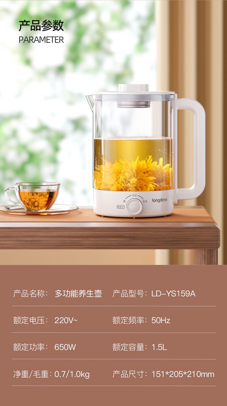 商品名称:Longde/龙的1.5升多功能养生壶LD-YS159A