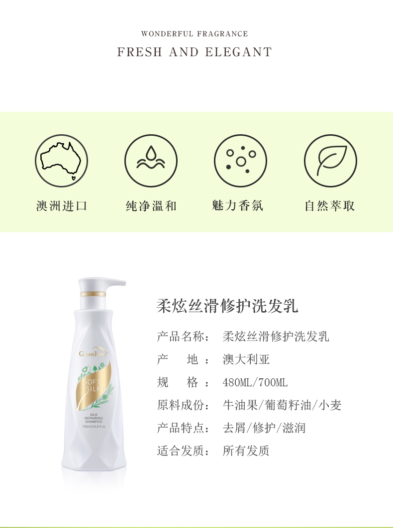 商品名称:GreenKosy/绿色溪谷柔炫丝滑修护洗发乳