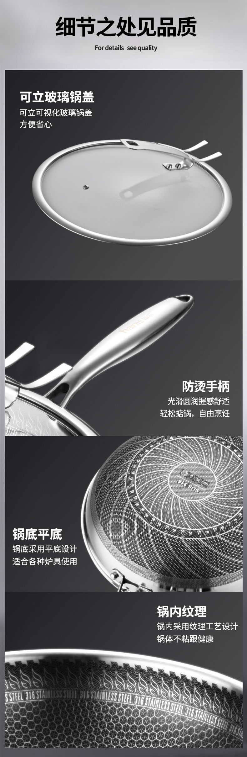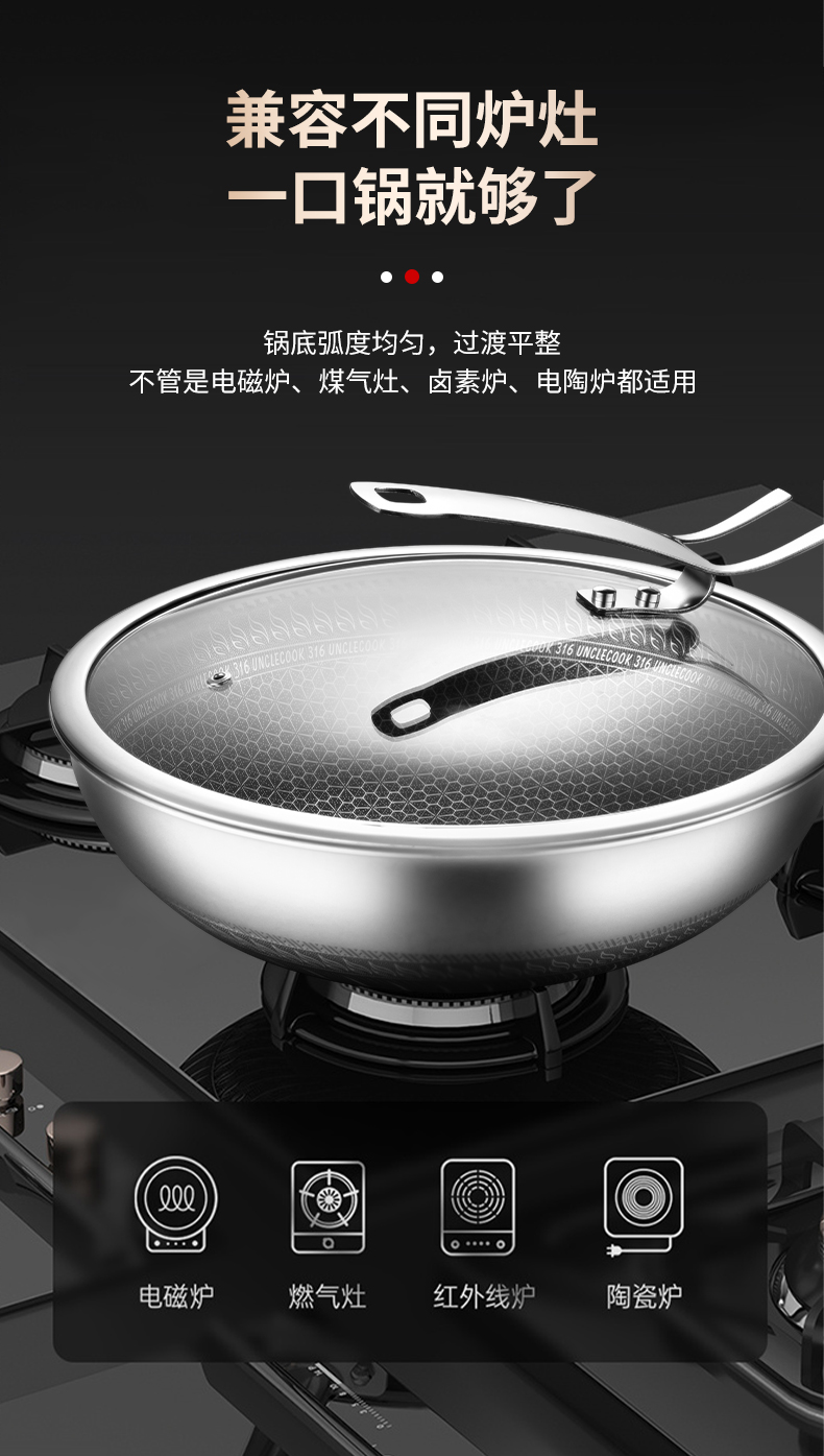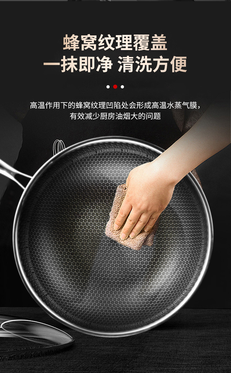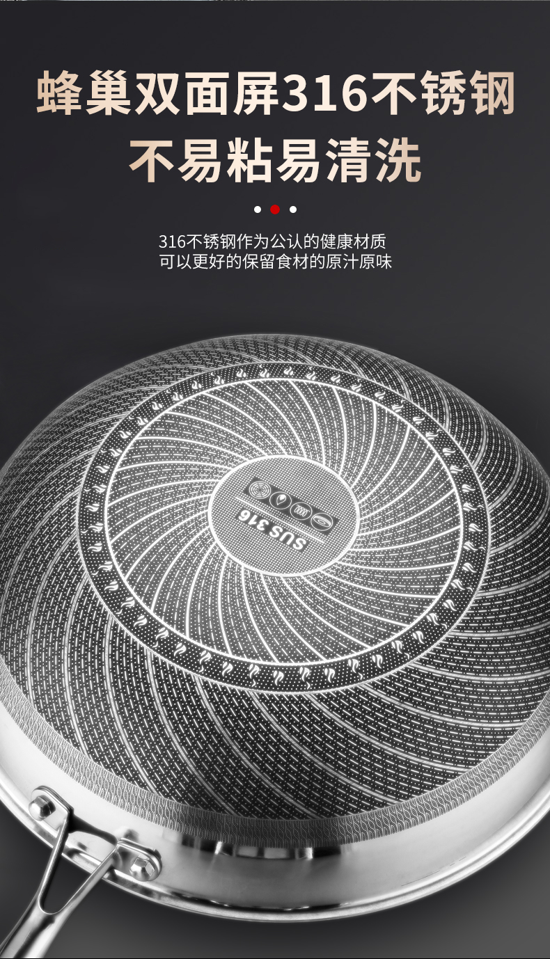 商品名称:hanle/翰乐32cm双面屏316不锈钢炒锅带蒸笼HL-F11