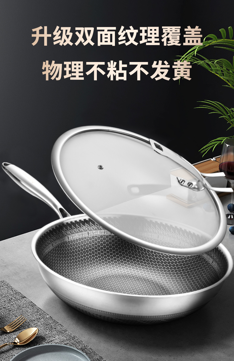 hanle/翰乐32cm双面屏316不锈钢炒锅带蒸笼HL-F11