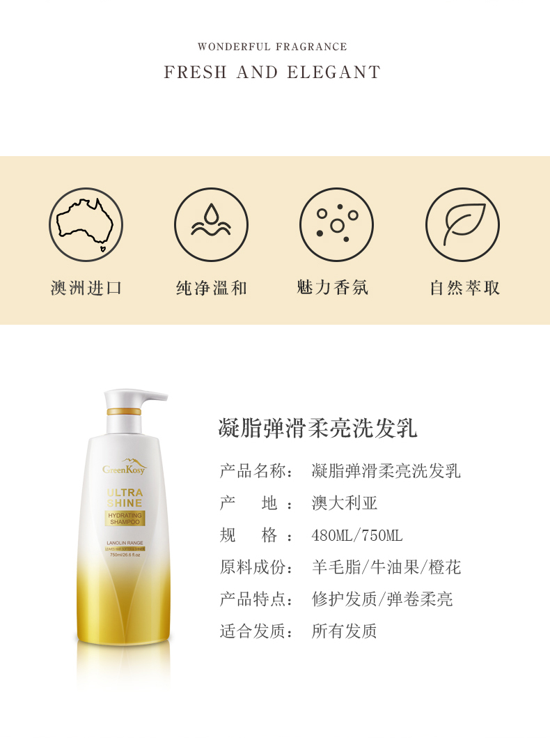 商品名称:GreenKosy/绿色溪谷凝脂弹滑柔亮洗发乳