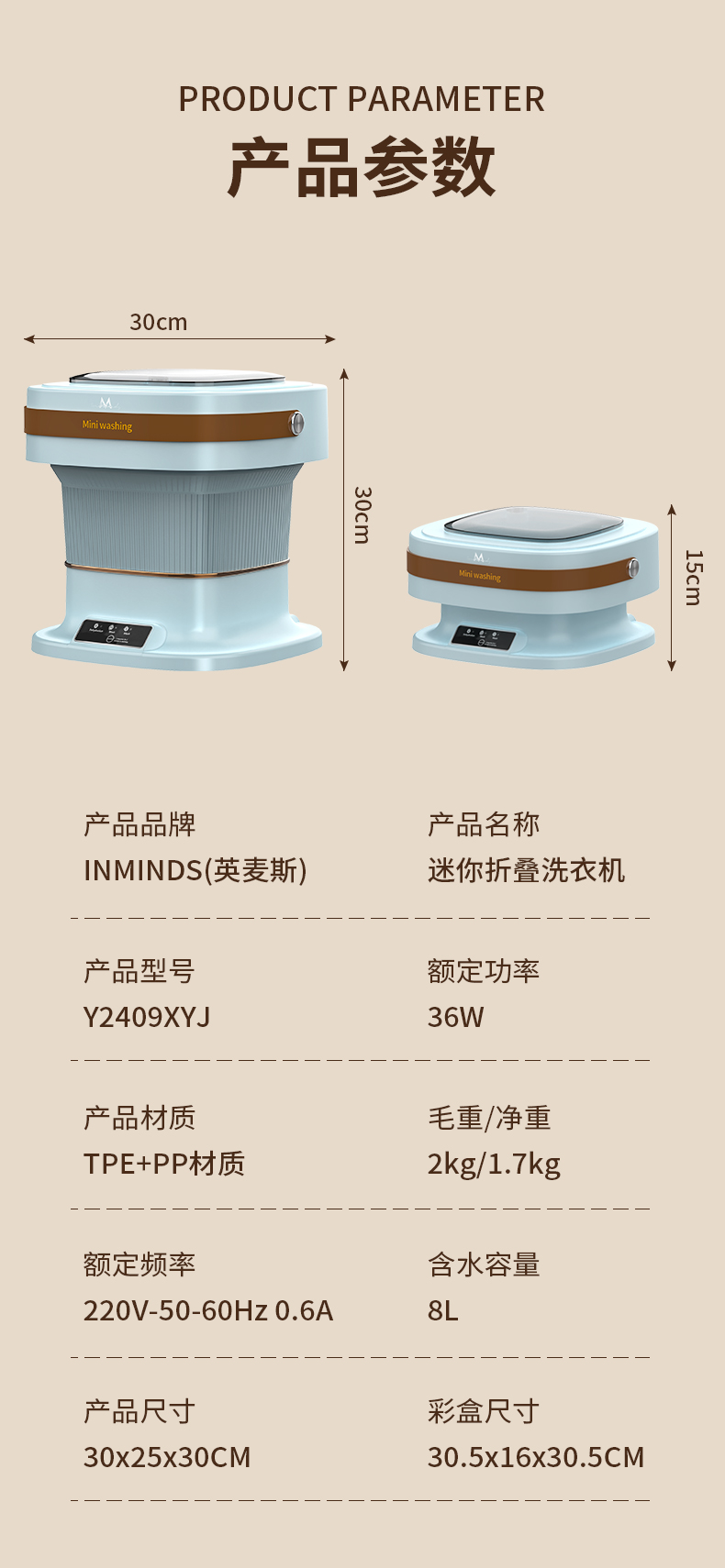 商品名称:【京东/顺丰配送】INMINDS/英麦斯8升迷你折叠洗衣机Y2409XYJ
