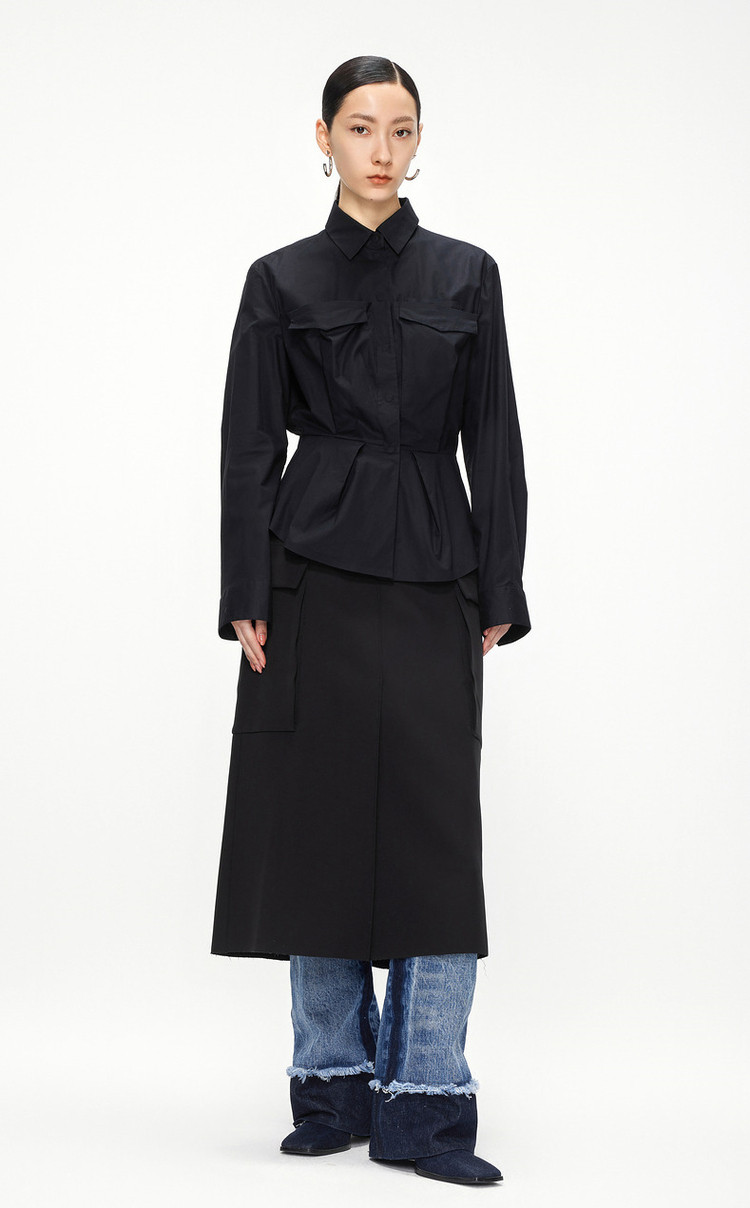 商品名称:春衬衫大口袋长袖X型衬衣女 242379