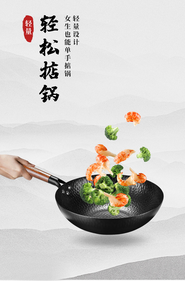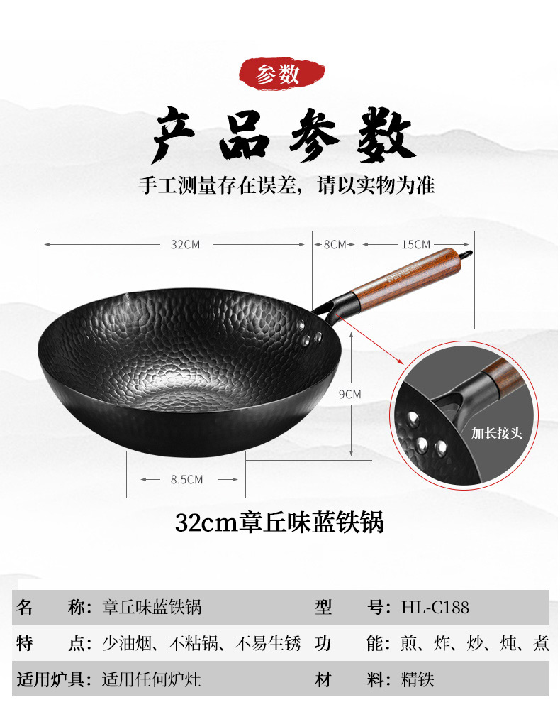 商品名称:hanle/翰乐32cm章丘味蓝炒锅HL-C188