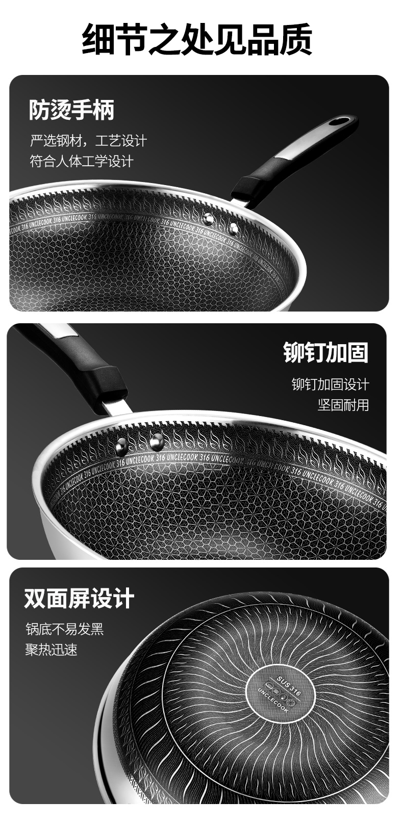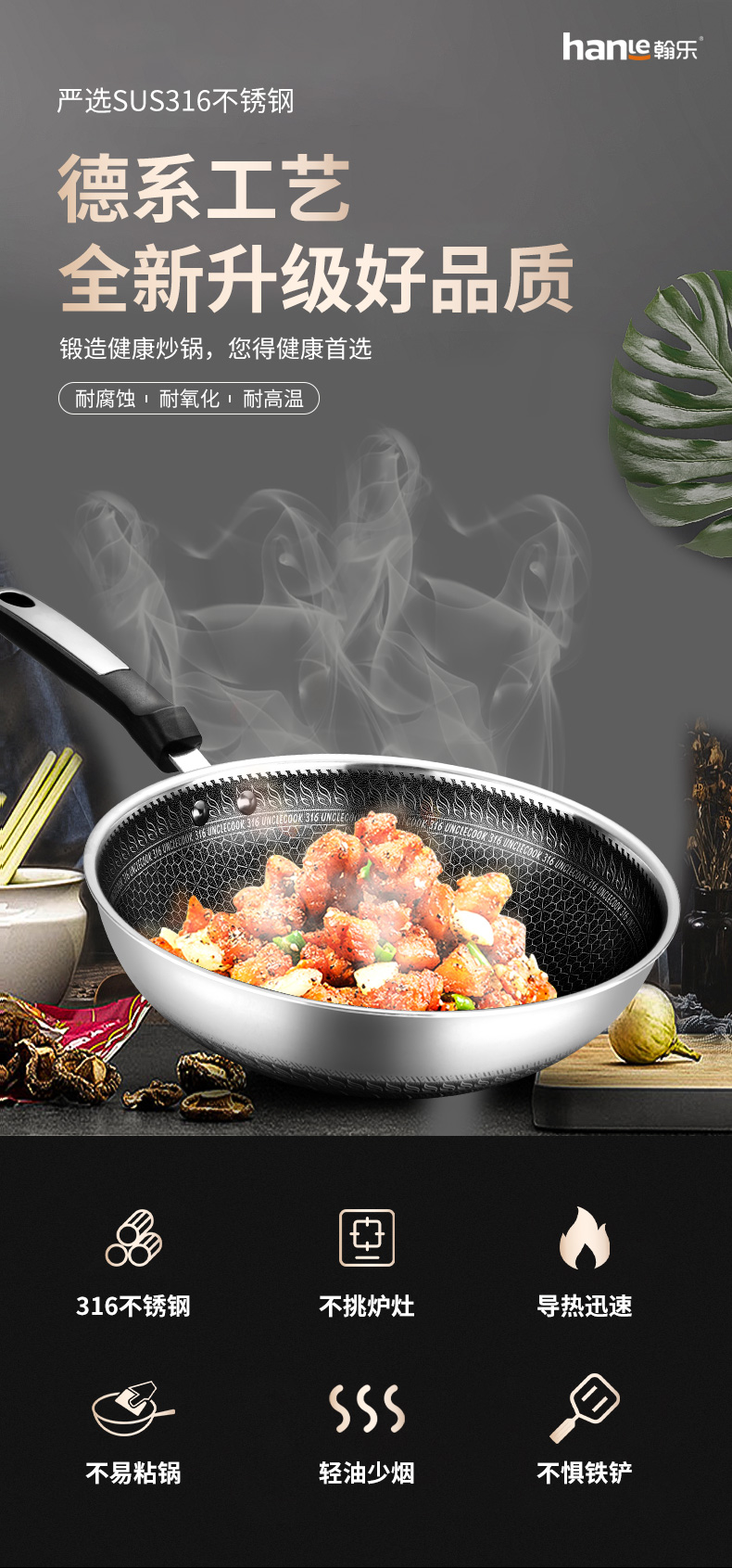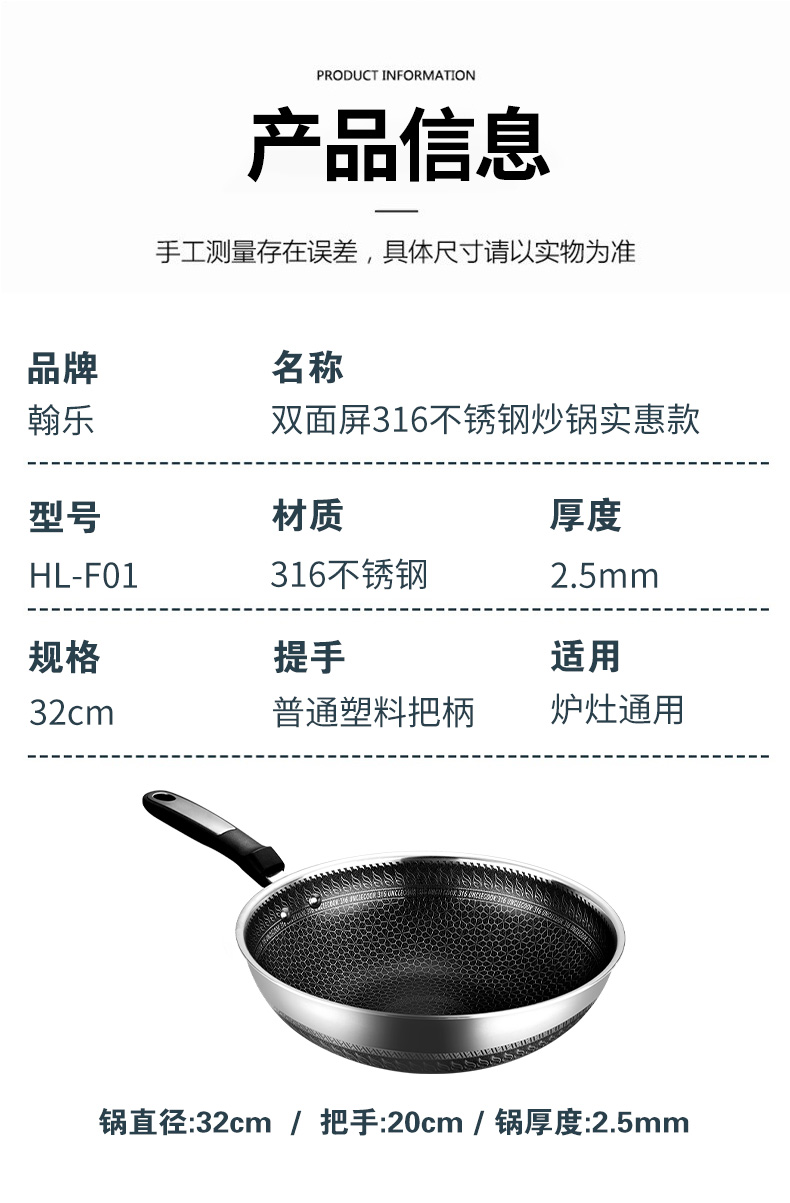 商品名称:hanle/翰乐32cm双面屏316不锈钢炒锅实惠款HL-F01