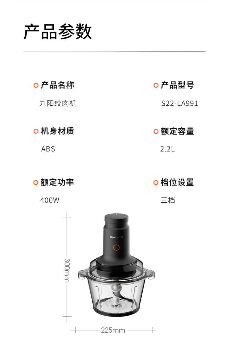 商品名称:【京东/顺丰/德邦配送】Joyoung/九阳2.2升绞肉机S22-LA991