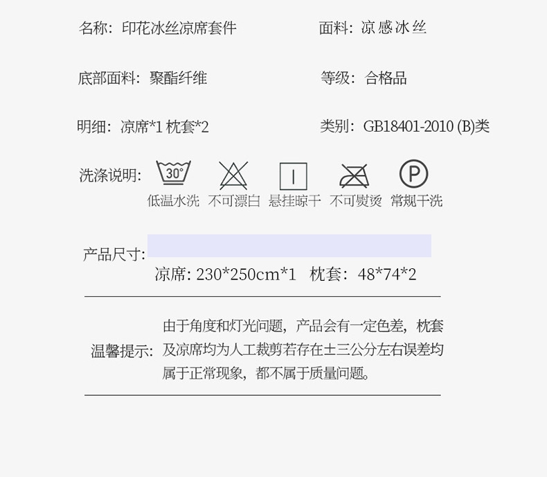 商品名称:雅鹿印花冰丝凉席三件套230*250cm