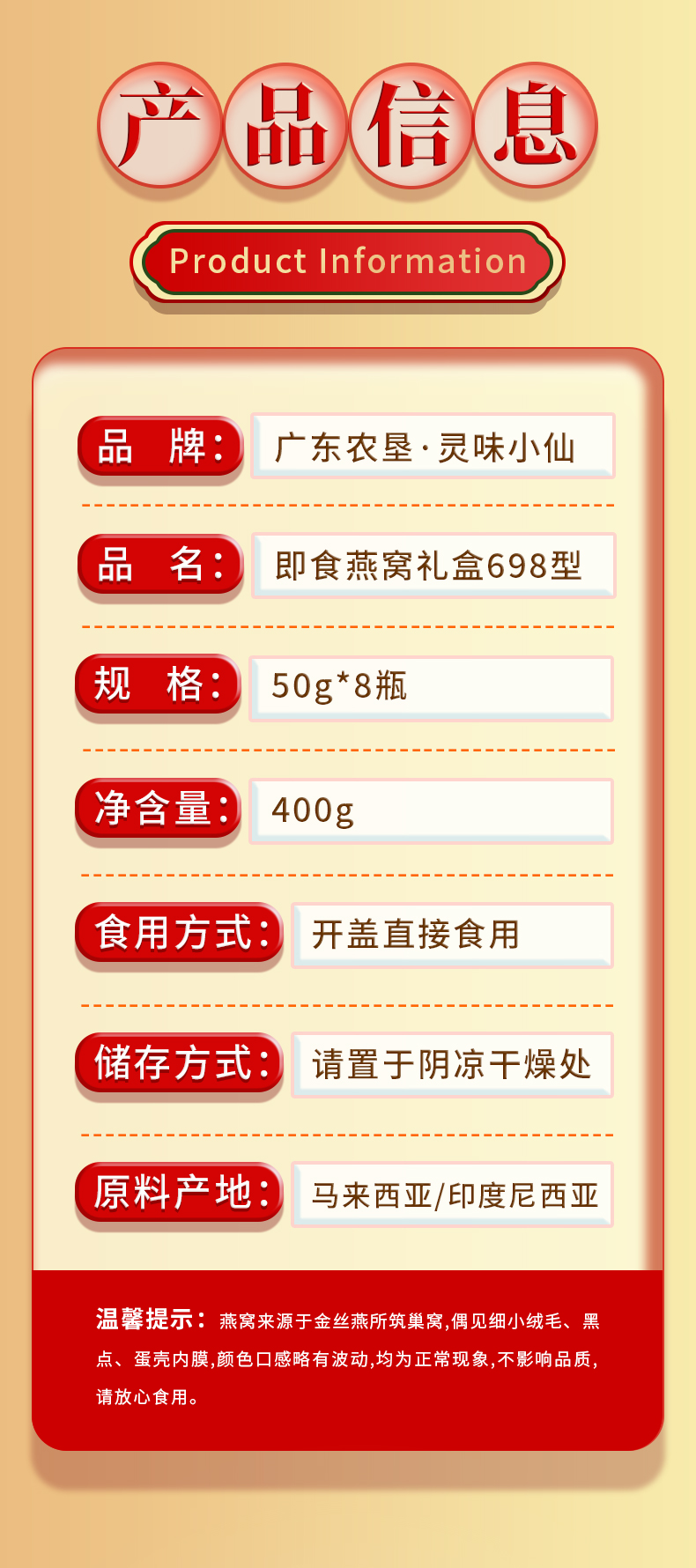 商品名称:廣東農垦灵味小仙即食燕窝礼盒698型400g