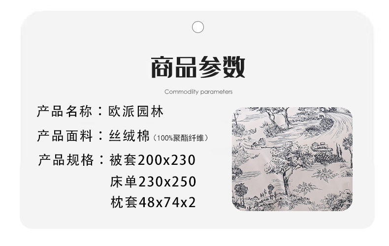 商品名称:GRACE/洁丽雅欧派园林抗菌床品四件套200*230cm