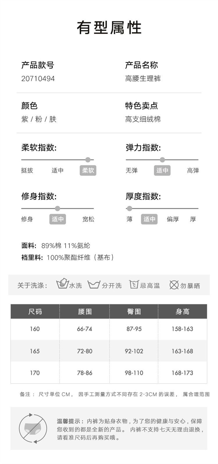 商品名称:【高腰提臀收腹】柔软舒适生理裤包臀高腰三角裤抑菌内档女士内裤 146907