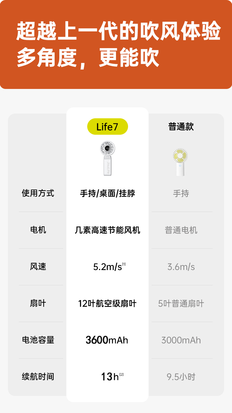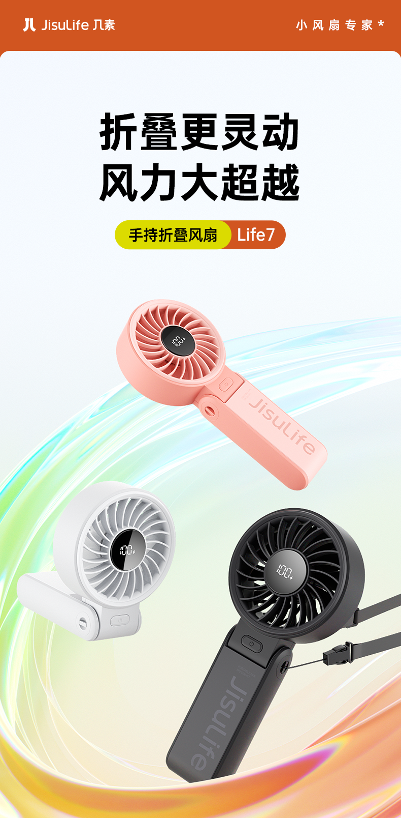 JISULIFE/几素3600mAh可折叠挂绳手持小风扇Handheld Fan Life7