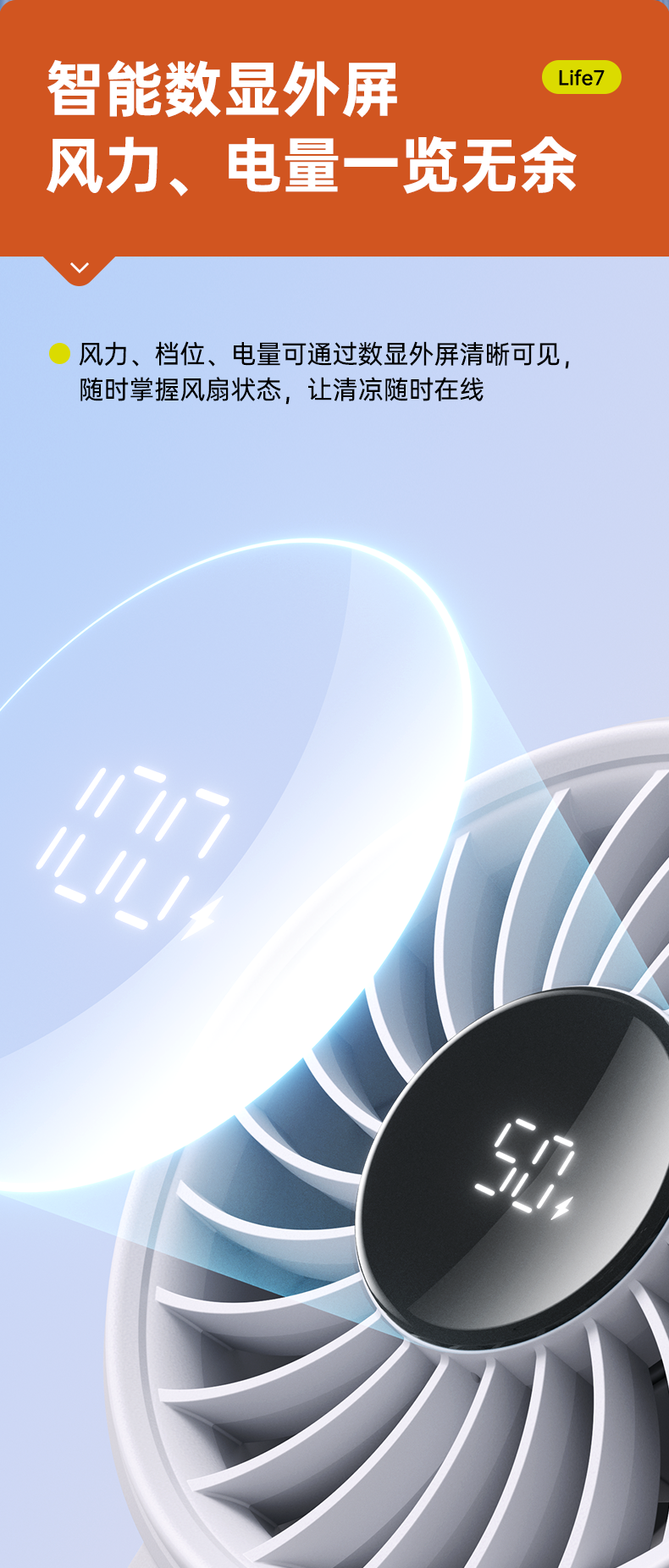 商品名称:JISULIFE/几素3600mAh可折叠挂绳手持小风扇Handheld Fan Life7