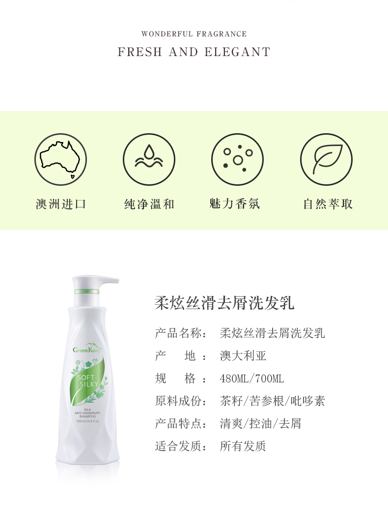 商品名称:GreenKosy/绿色溪谷柔炫丝滑去屑洗发乳