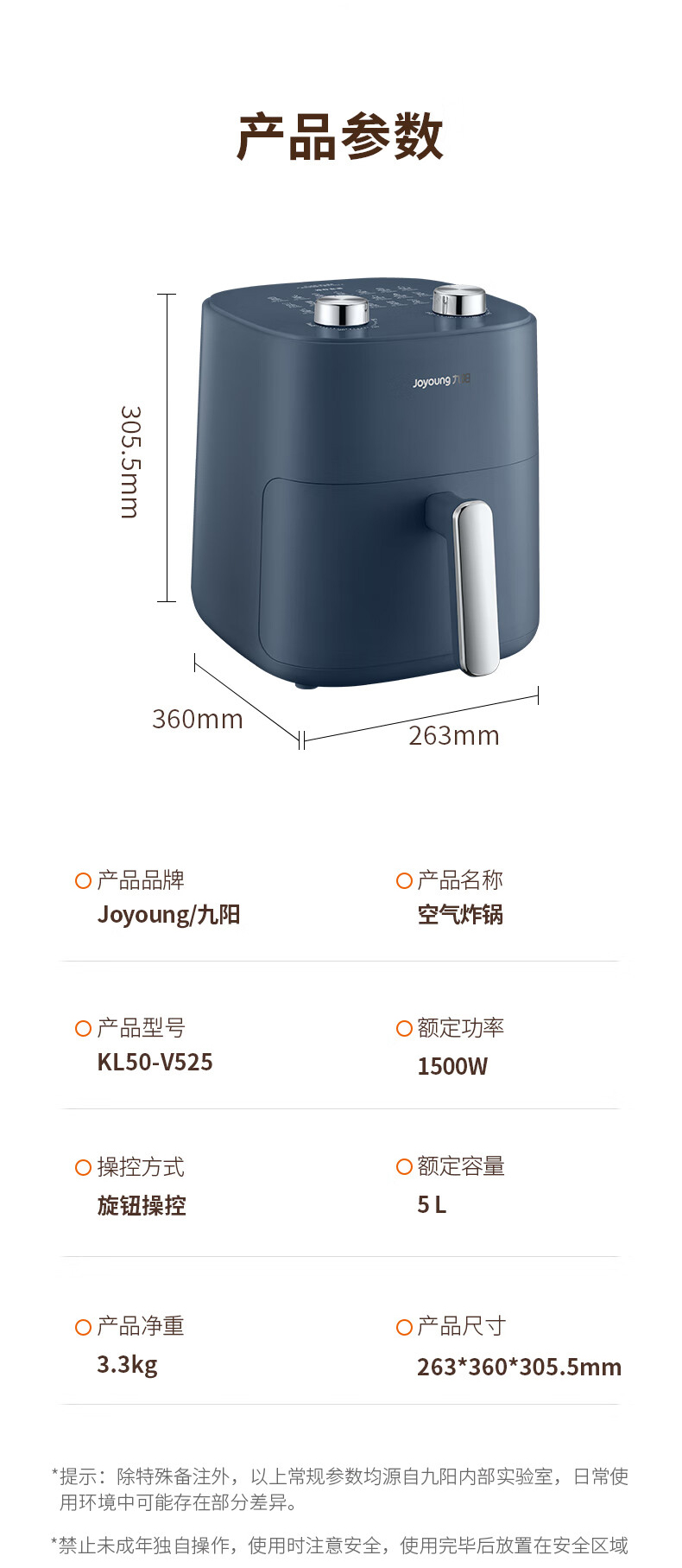 商品名称:Joyoung/九阳5升空气炸锅KL50-V525