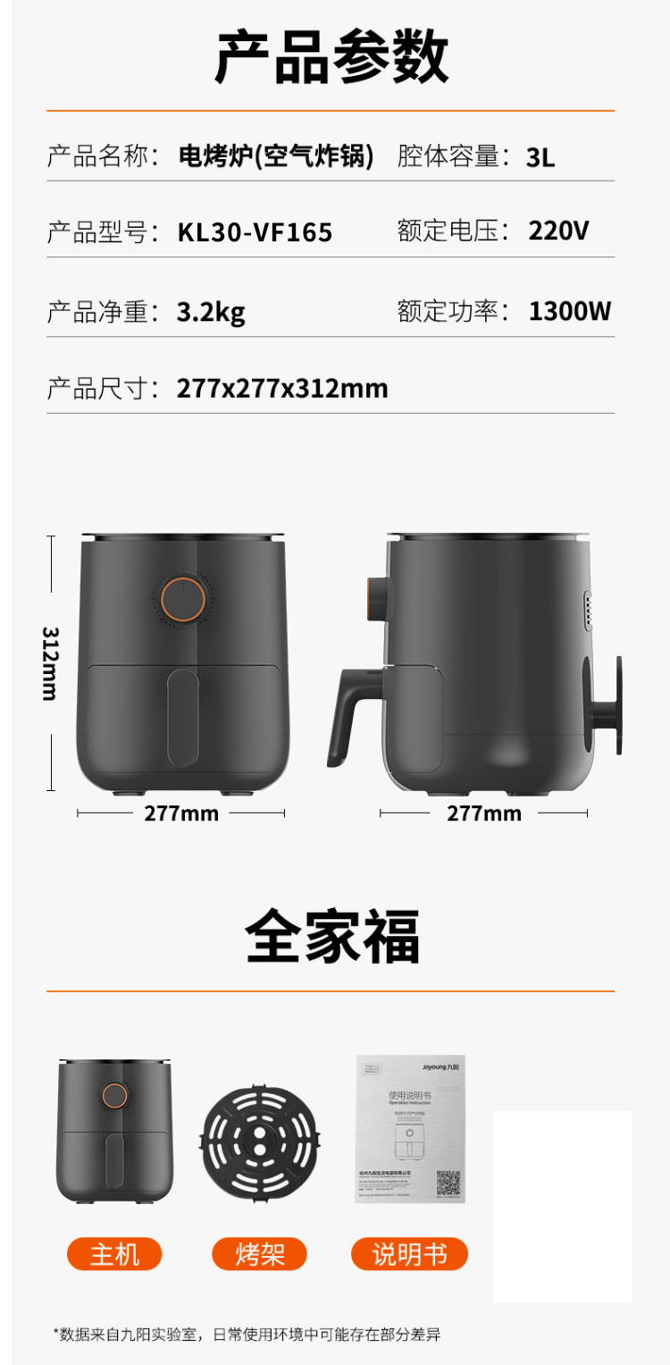 商品名称:Joyoung/九阳3升空气炸锅KL30-VF165