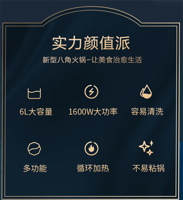 商品名称:hanle/翰乐6升八角多功能电火锅HL-Q8